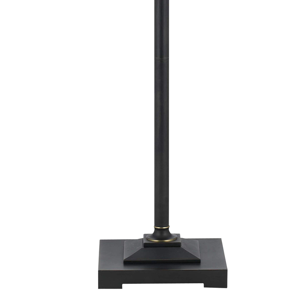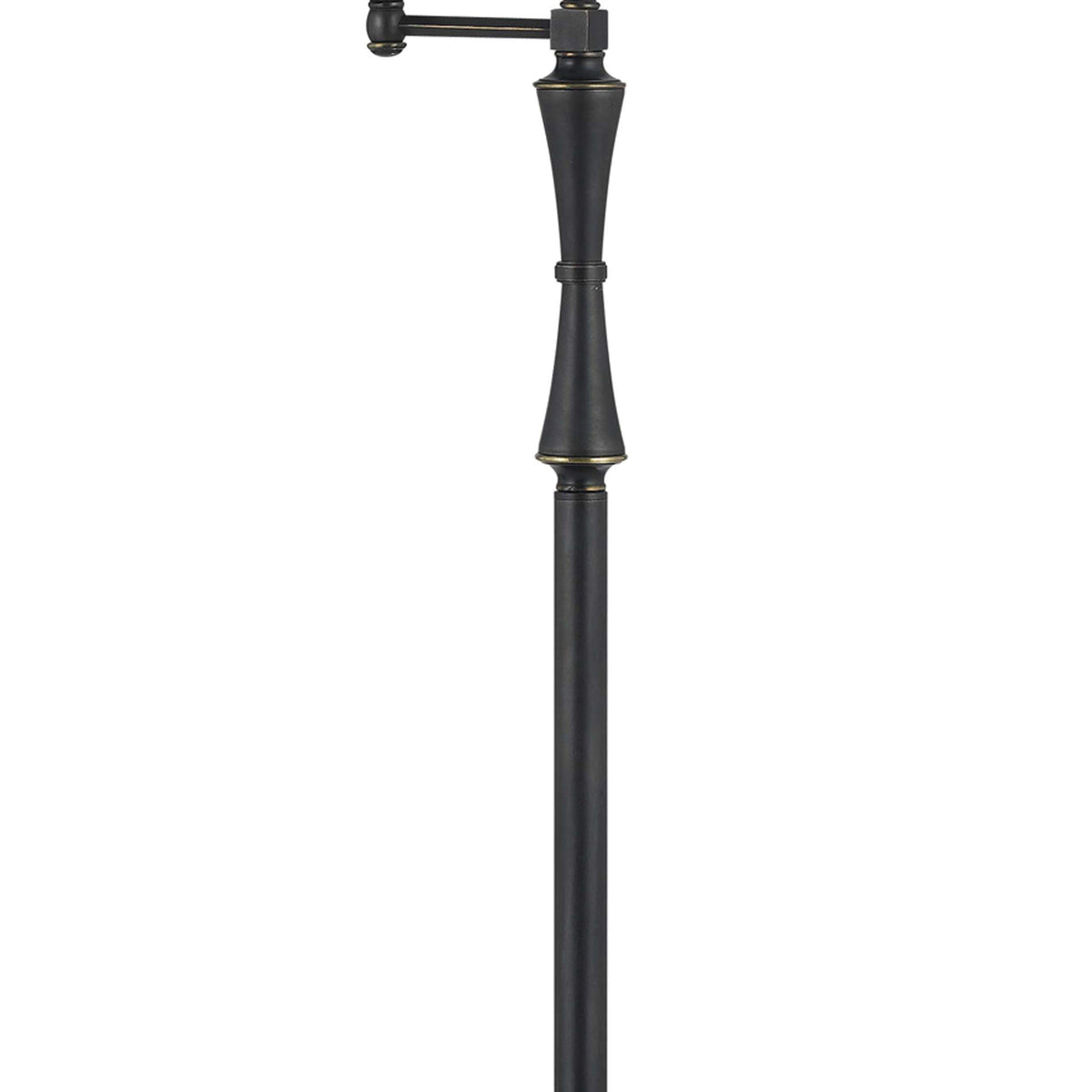 Add a transitional flair to your living space with the inclusion of this sophisticated floor lamp. It features a tubular metal frame with a swing arm, incorporating a fabric tapered bell shade with chain pull switches for control. It is supported by a block base, providing stability and durability.