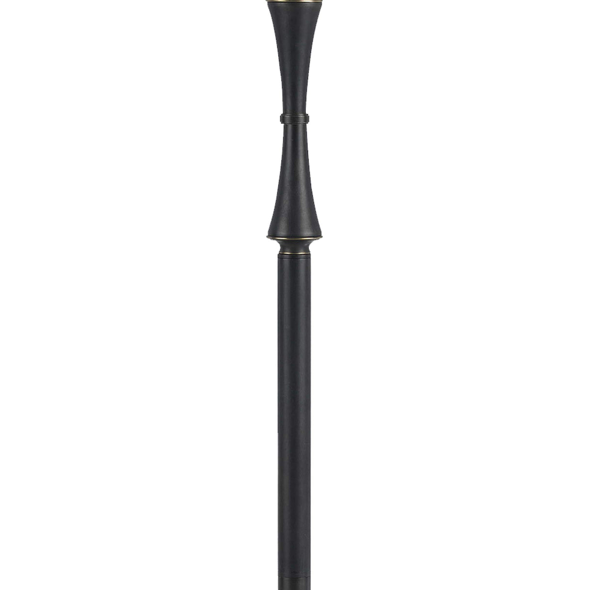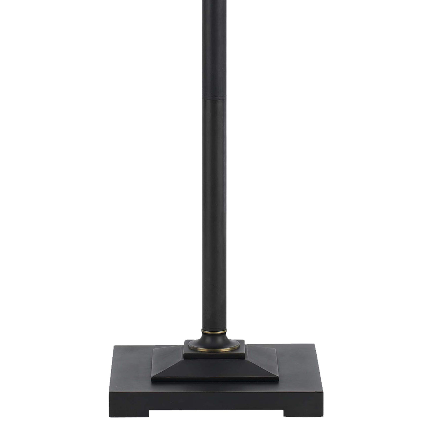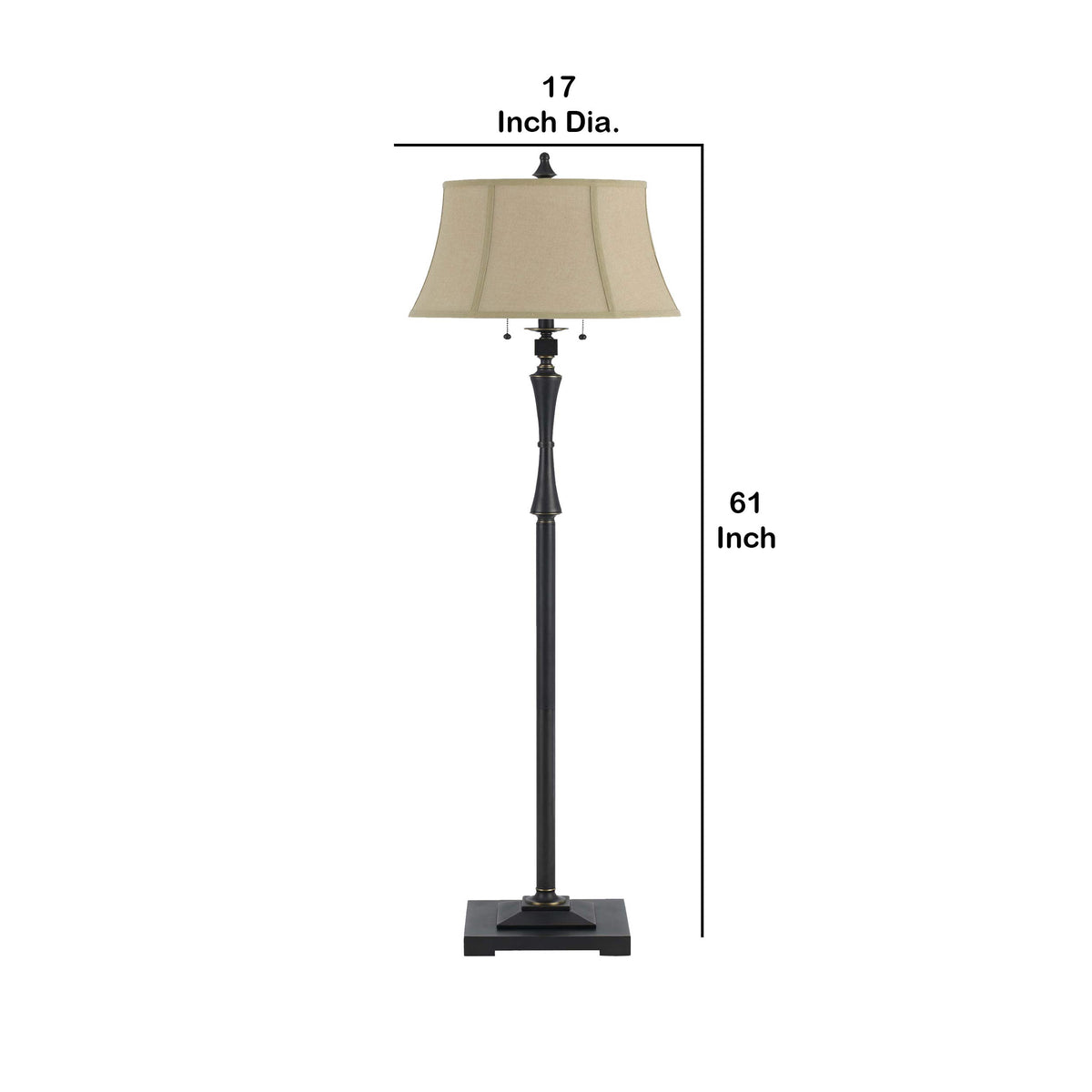Add a transitional flair to your living space with the inclusion of this sophisticated floor lamp. It features a tubular metal frame, incorporating a fabric tapered bell shade with 2 bulbs and chain pull switches for control. It is supported by a block base, providing stability and durability.
