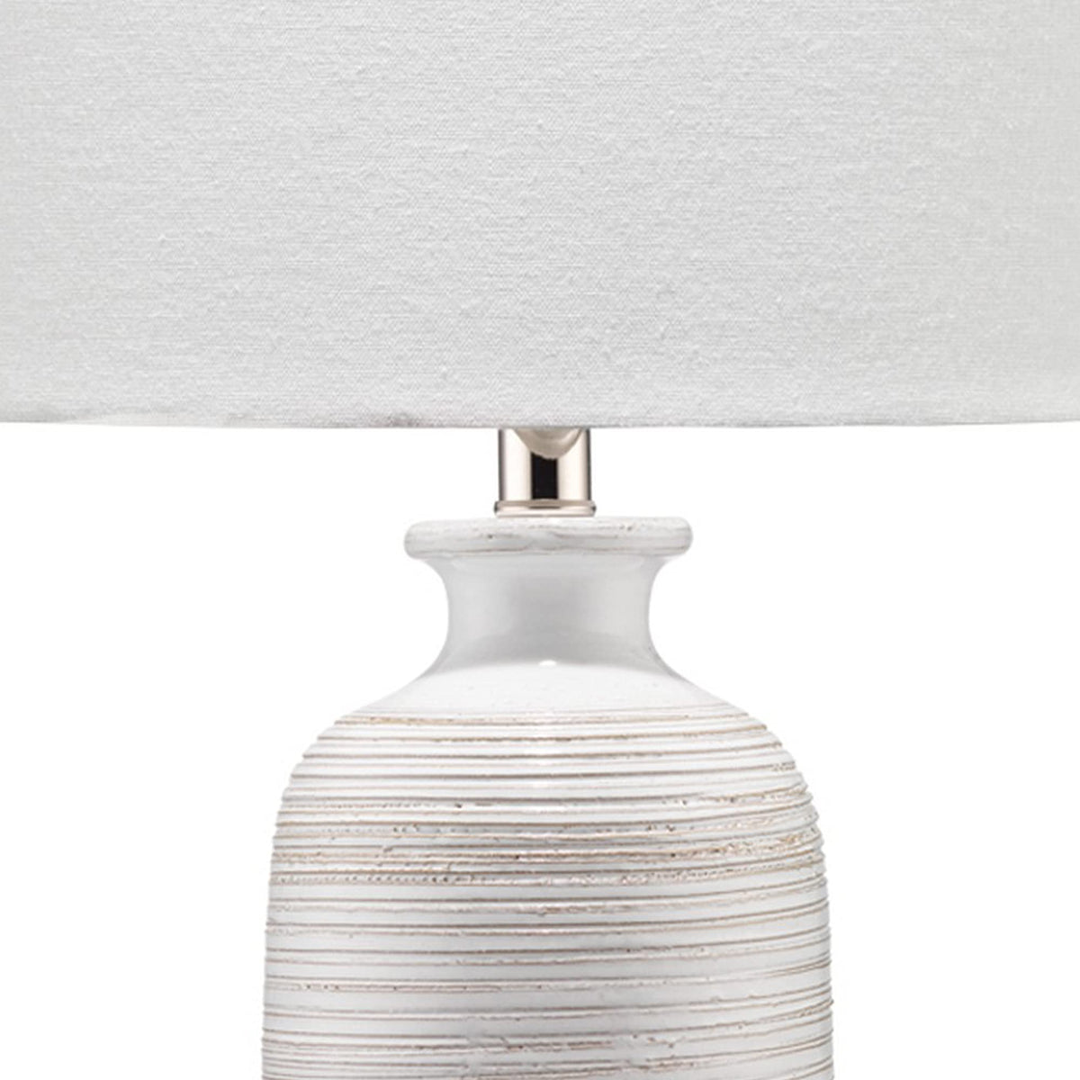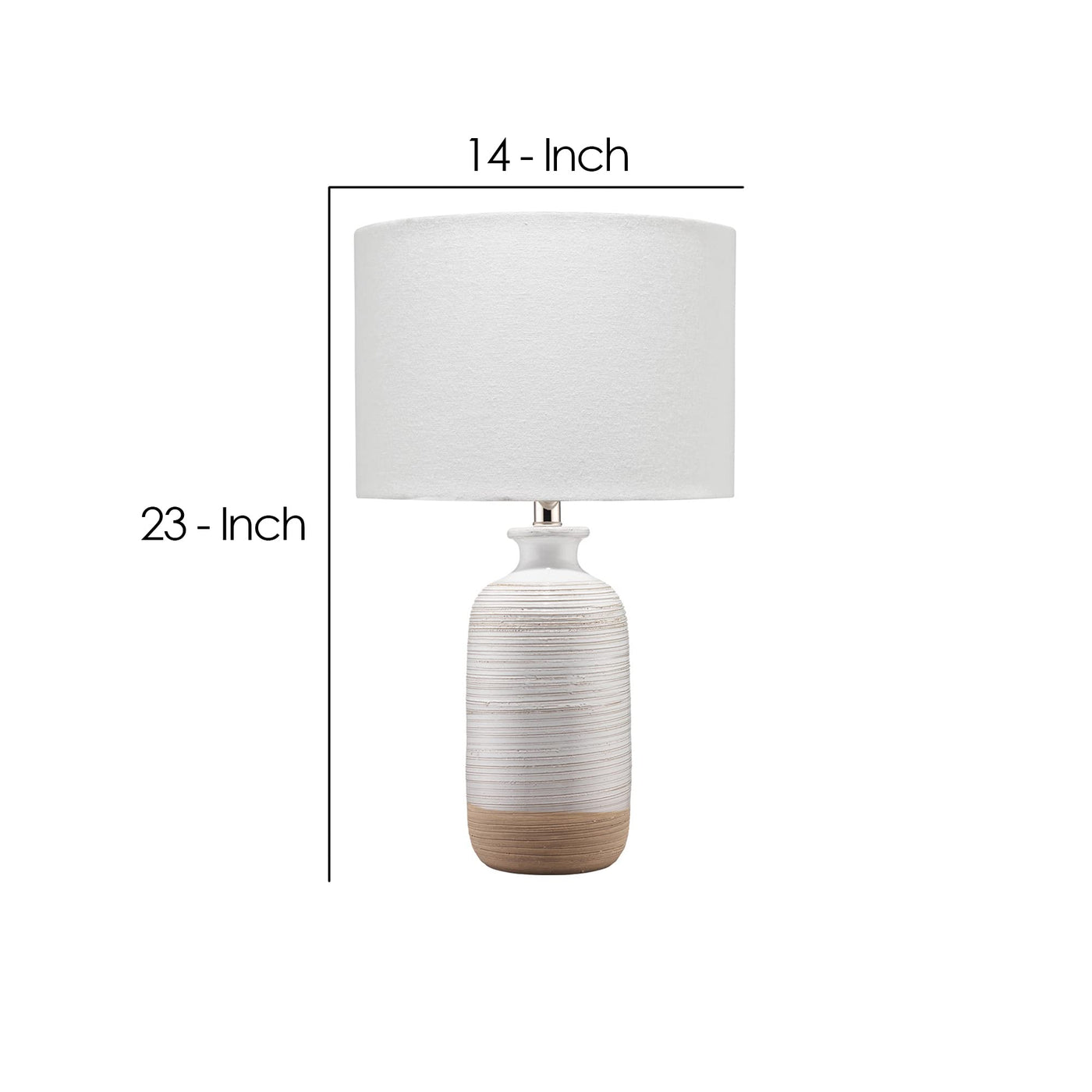 Benjara Table Lamp With Brushed Ceramic Body And Fabric Shade, Cream
