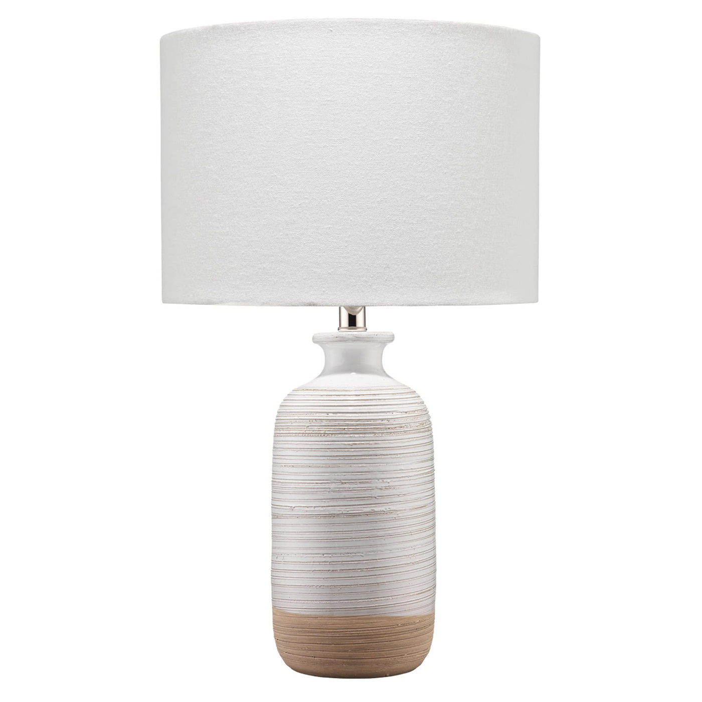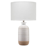 Bless your interior with the rays of prosperity and happiness by lighting up this sophisticated and generous table lamp. Featuring a round ceramic body, it showcases brushed details and incorporates a fabric drum shade that uses a 150 watt bulb with E26 base.