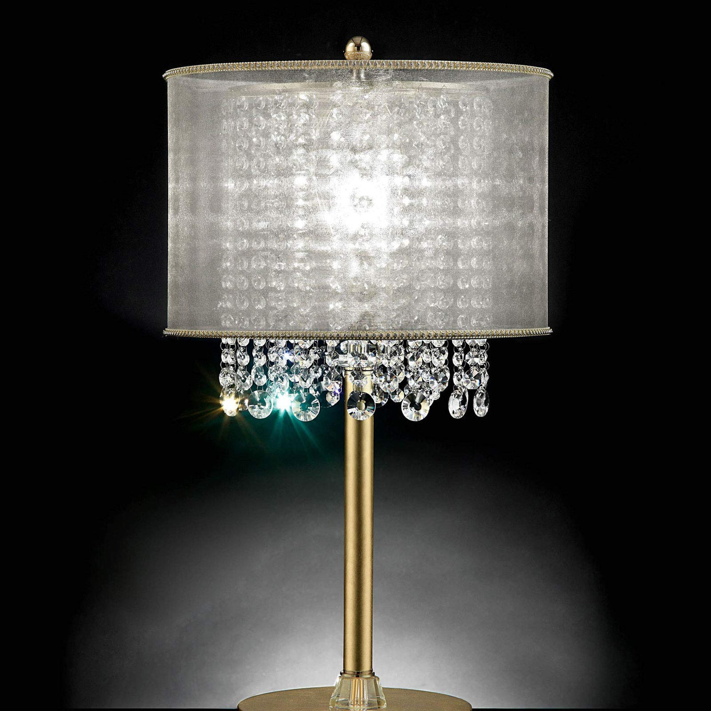 Energize your home with the light of positivity by including this contemporary table lamp. It has a tubular metal stand supported by a round metal base in gold finish. The drum shade is translucent and white in colour showcasing stylish hanging crystal droplets imparting contemporary look.