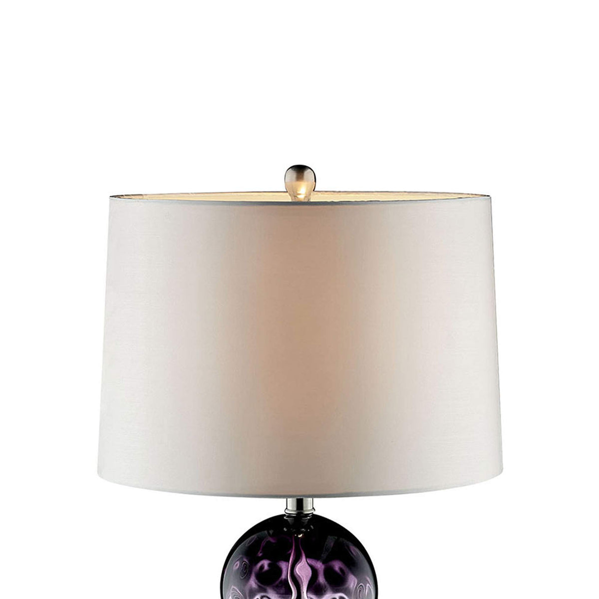 Add an elegant touch to your room decor with this stacked ball base table lamp with round tier support and drum shaped shade. With ombre glass in the base, the blend of purple and blue color adds to its look and makes it very eye pleasing.