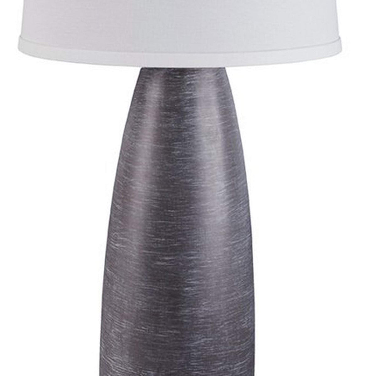 Bless your home with the lights of hope and happiness by bringing in this sophisticated table lamp, available in a set of 2. It features a vase shaped resin body in a gray finish, incorporating a 3 way switch for control and a tapered fabric shade that uses an A type bulb of 150 watt or 25 watt CFL.
