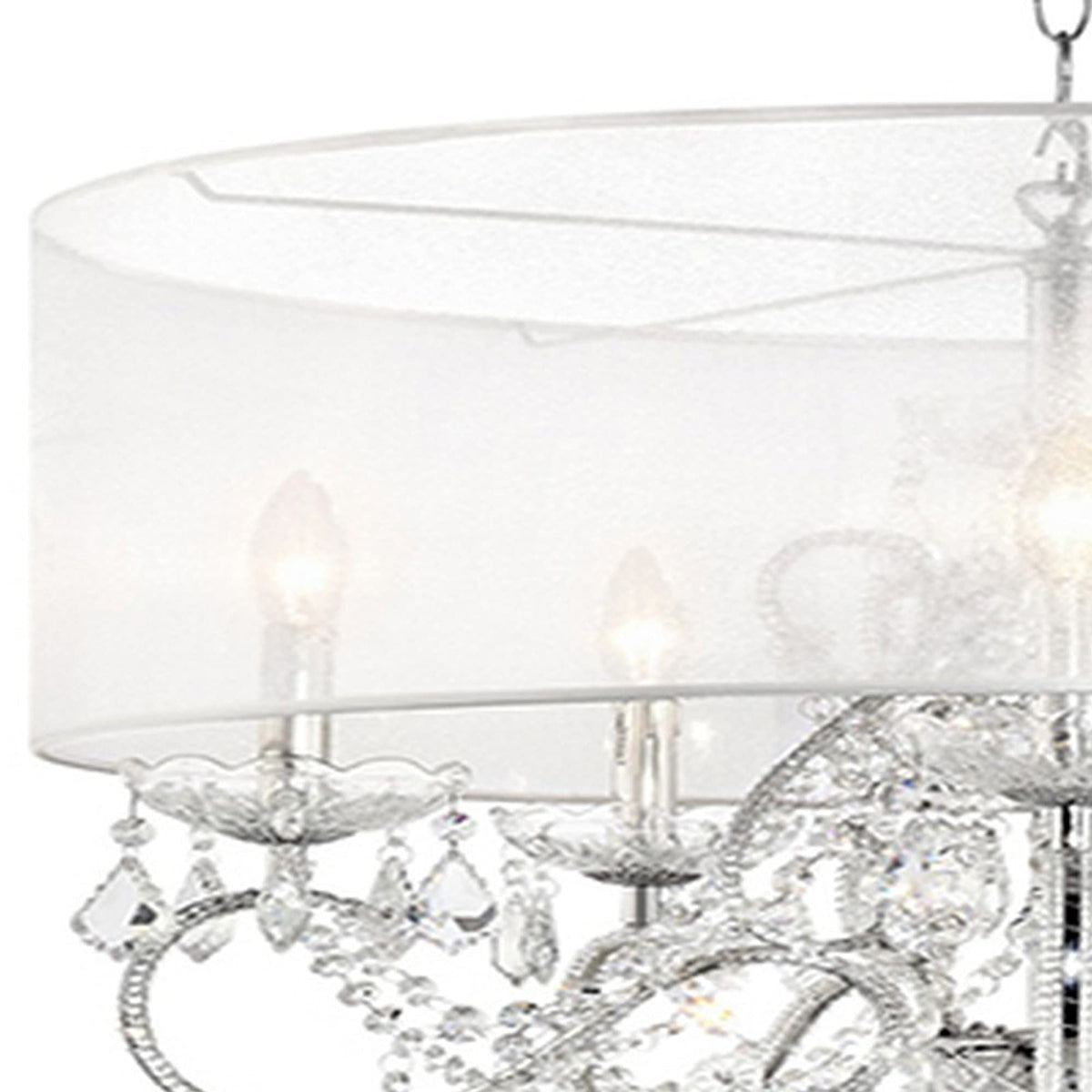Benjara Wall Ceiling Lamp with Hanging Crystals and Round Canopy, Silver