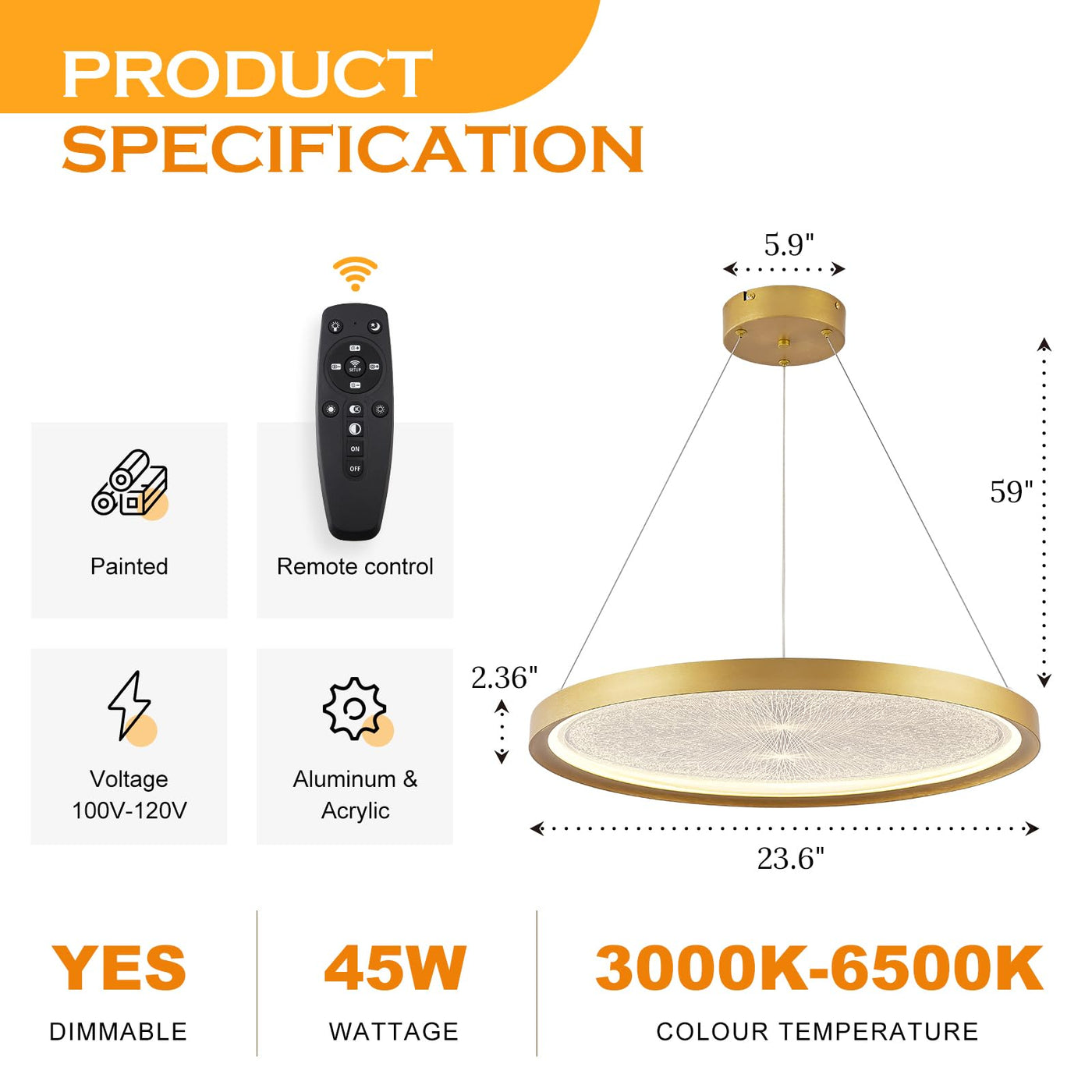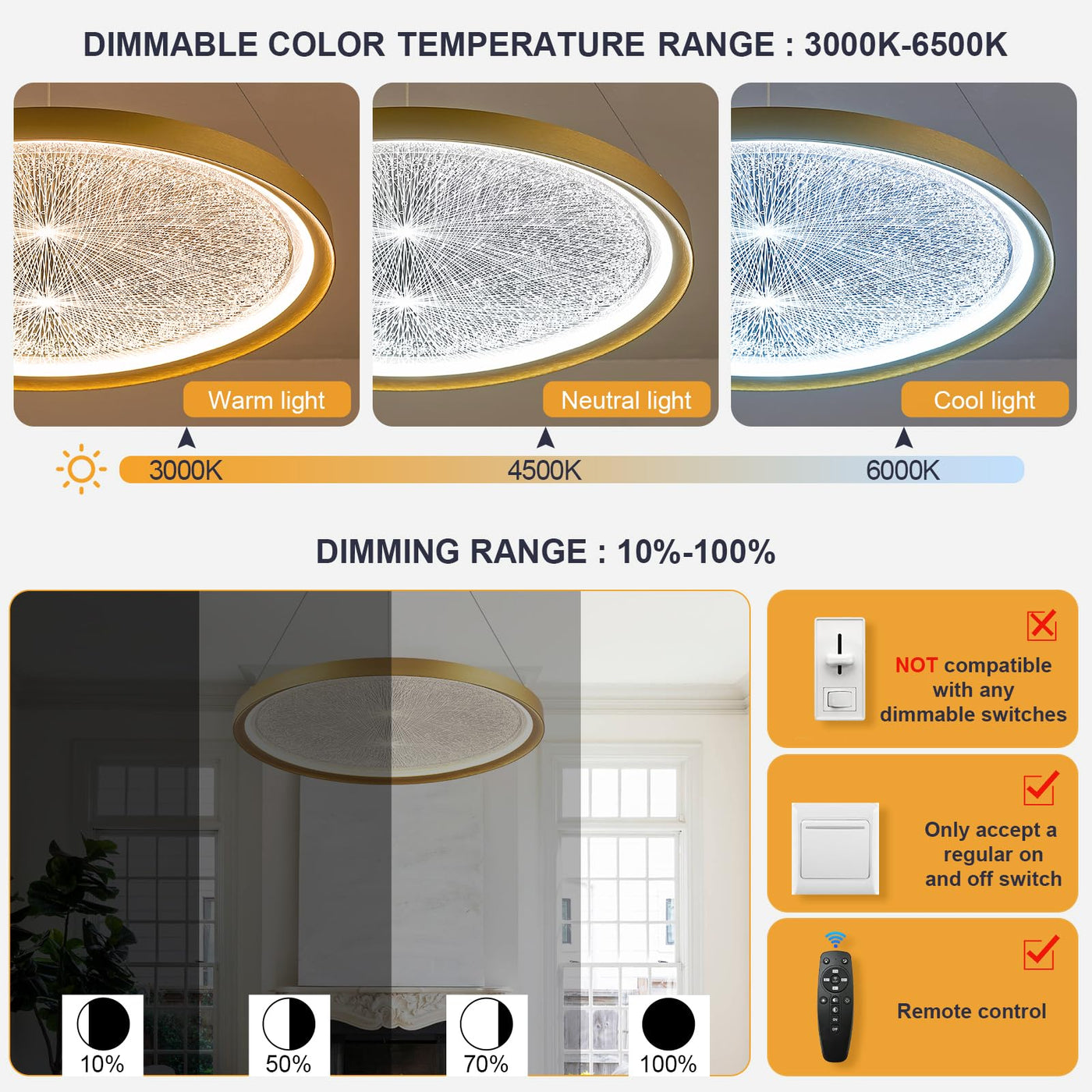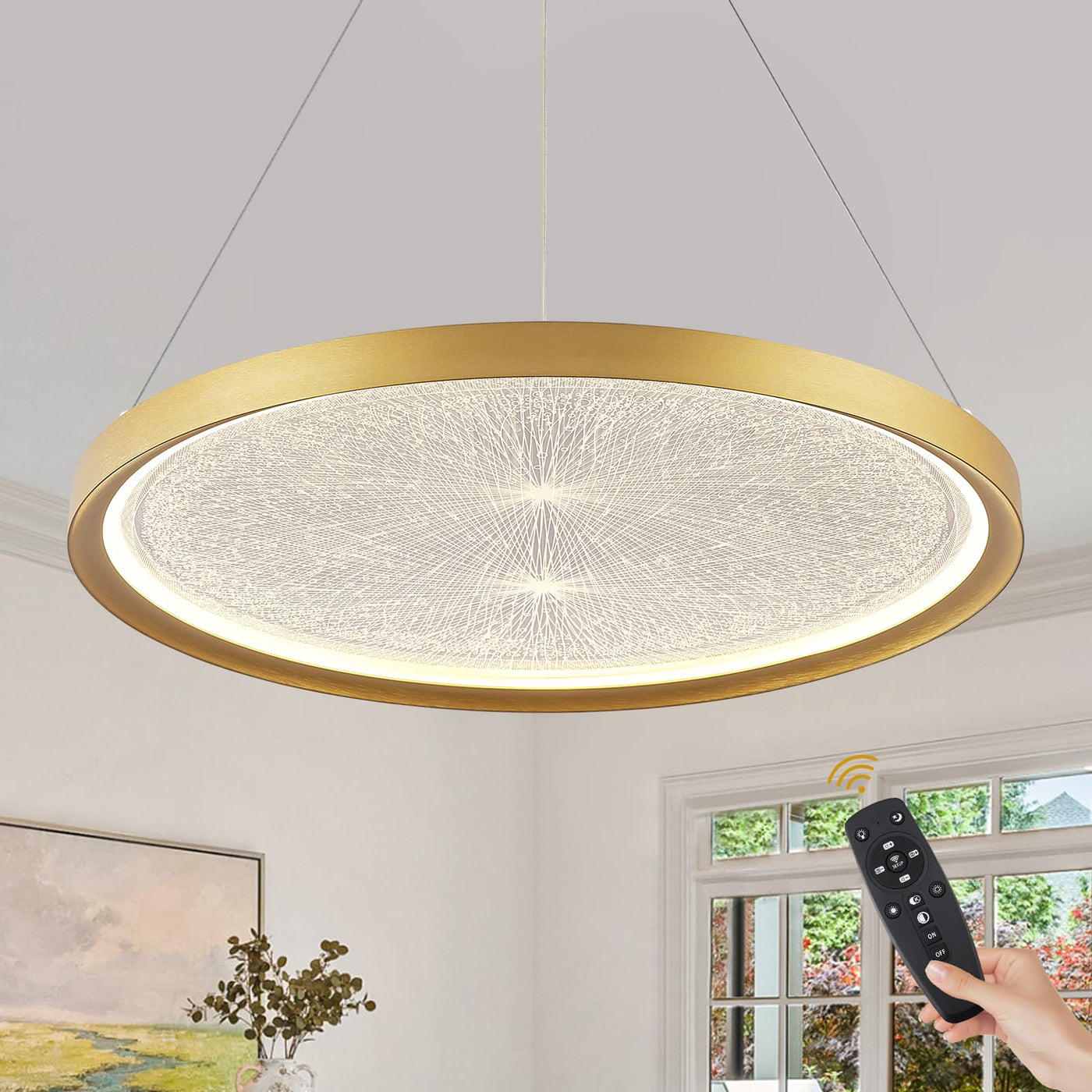 Benkut Modern Led Chandelier Gold 24 Round Led Pendant Light Starry Sky Light Fixture Dimmable With Remote Control Flush Mount O