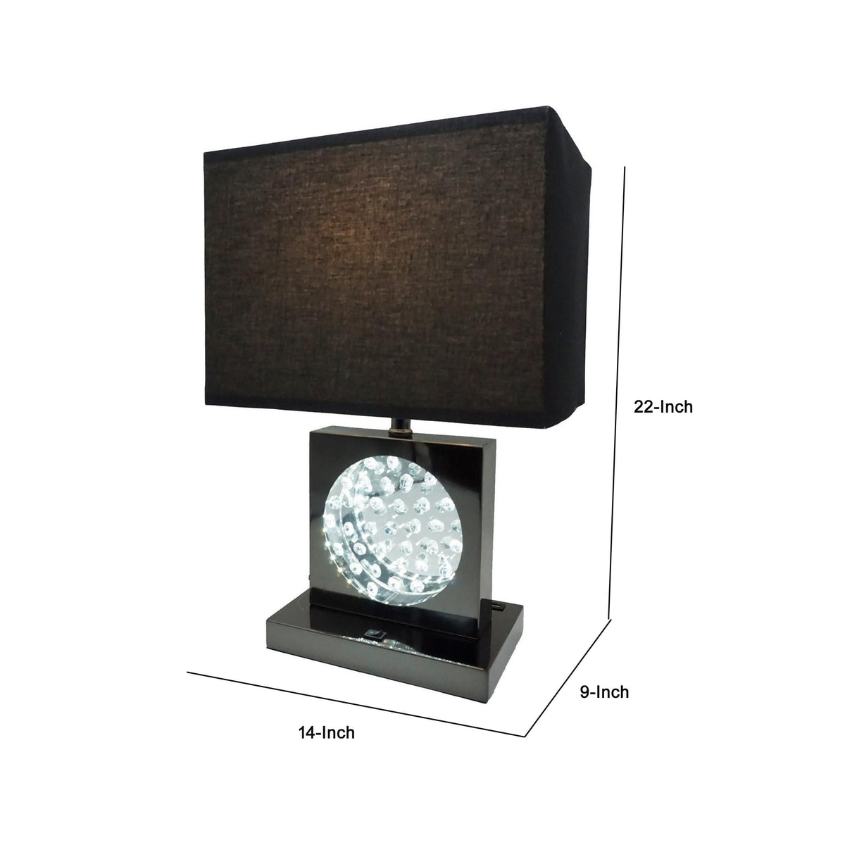 Brimming with sophistication and luxury, this charming jet black table lamp is perfect for any living space or designated work area. Featuring a black square fabric shade that emits smooth, inviting light, the glass panel body is adorned with crystal LED accents, adding a decorative touch and striking modernistic appeal to any room in your home. Check out our Rohi collection for matching items.
