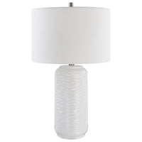 Benzara 27" Ceramic Table Lamp - Wavy Texture, Silver And White Home Décor Accent