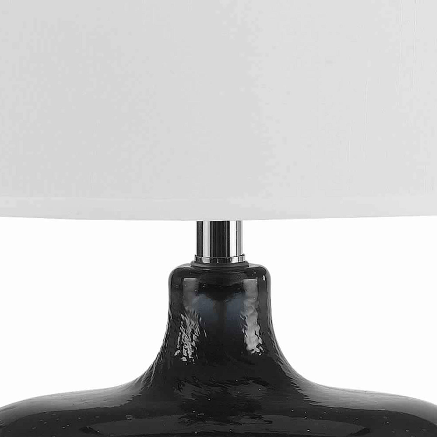 Q: What materials are used in this table lamp?A: This table lamp is constructed with a beautiful glass body in a blue finish and features a fabric drum shade, providing both style and functionality.