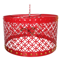 Exotically entrancing, this circular cutout metal chandelier is a show stopper. The filigree metal shade has a red finish, adding detail and elegance. This is the kind of chandelier that can change an entire room by adding its sophisticated charm and dazzling glow.