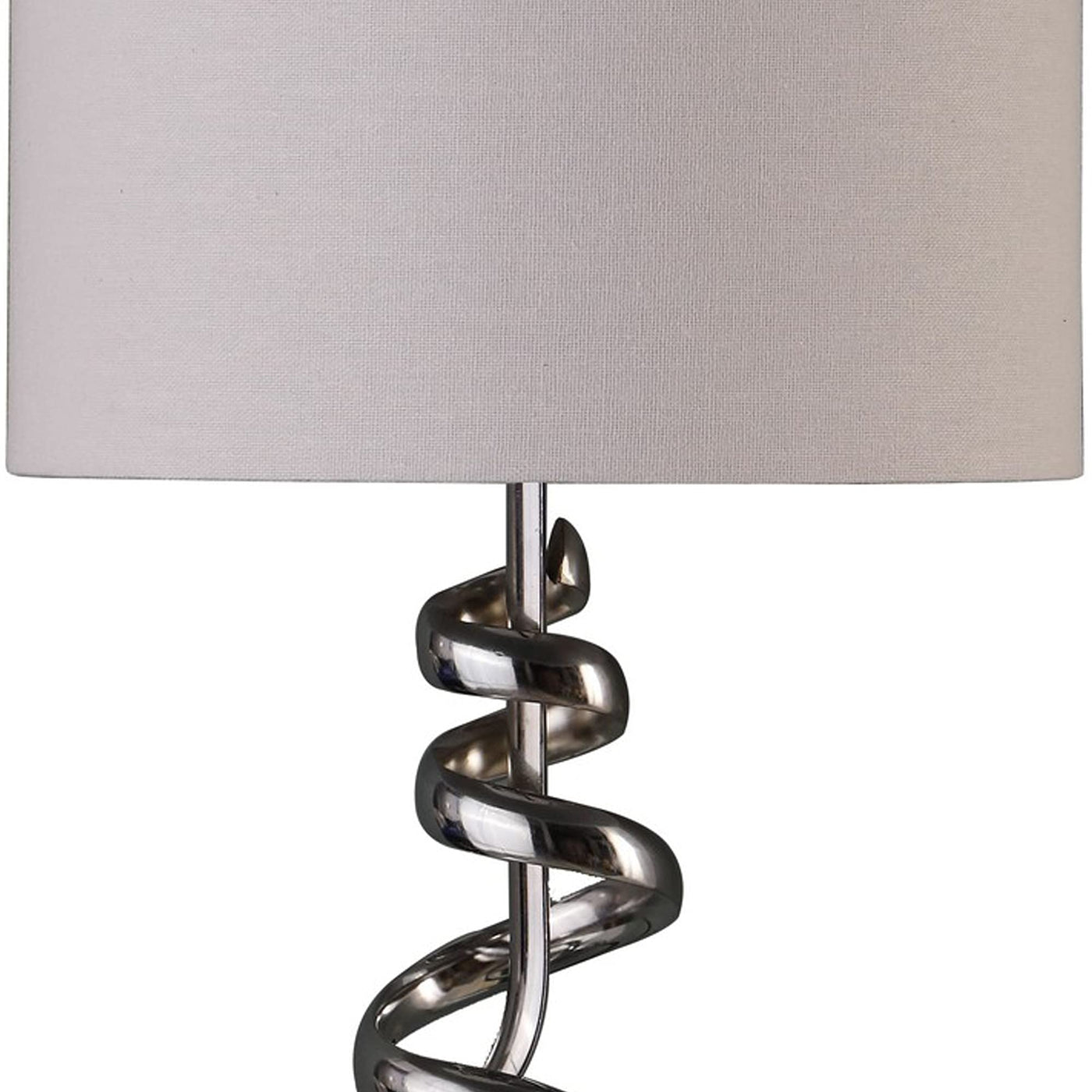 Q: What type of material is used in the construction of this lamp?A: This table lamp features a durable metal construction with a sleek silver finish, ensuring both style and longevity in your home decor.