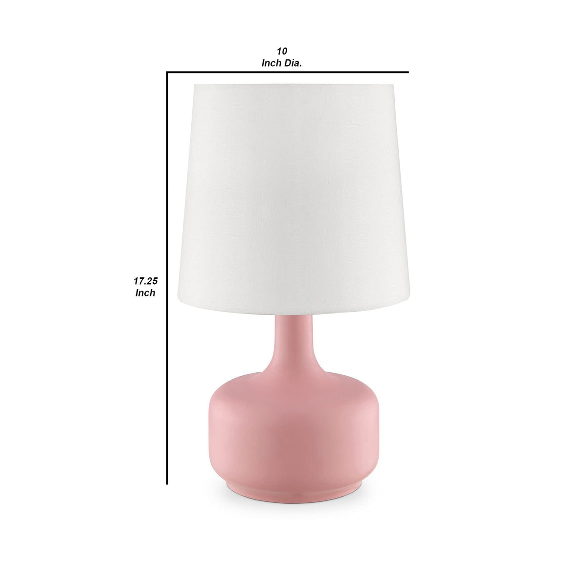 Benzara Bm240454 Table Lamp With Teardrop Metal Base & Fabric Shade, Pink