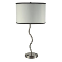 This piece of table lamp is extremely eye catching with its captivating appeal. The curved tubular body resting atop the round shaped base adds to the stability and strength of the entire piece. USB plugin adds to the functionality.
