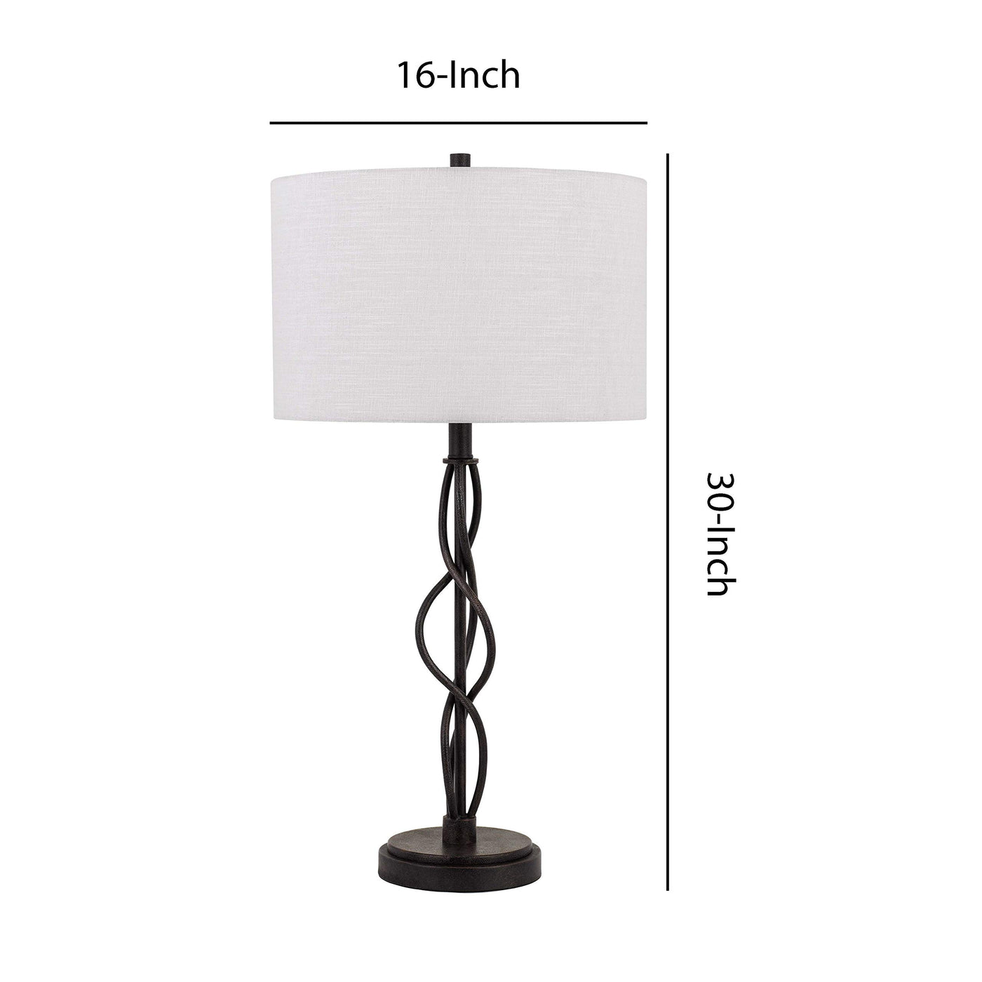 Benzara Round Table Lamp, White & Black Fabric Shade, Metal Spiral Design Base