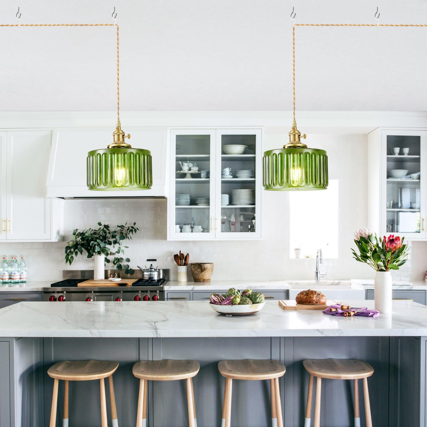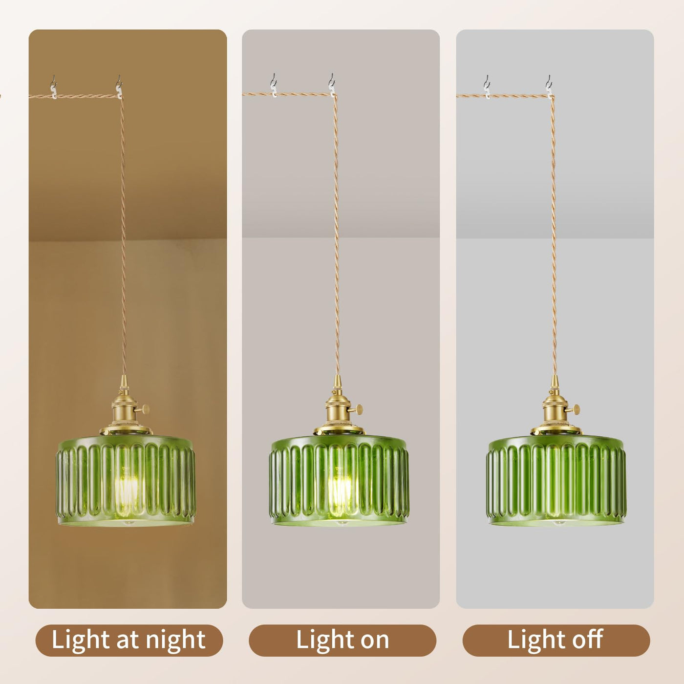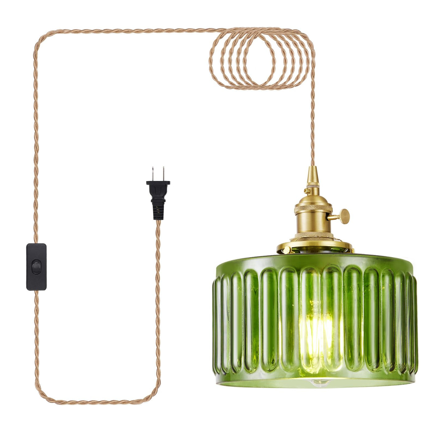 Beserwin Plug In Pendant Light Hanging Lights With Plug In Cord Hanging Light Fixture With Clear Glass E26 Pendant Lighting For Kitchen Island Bedroom Dining Room Living Room-Green