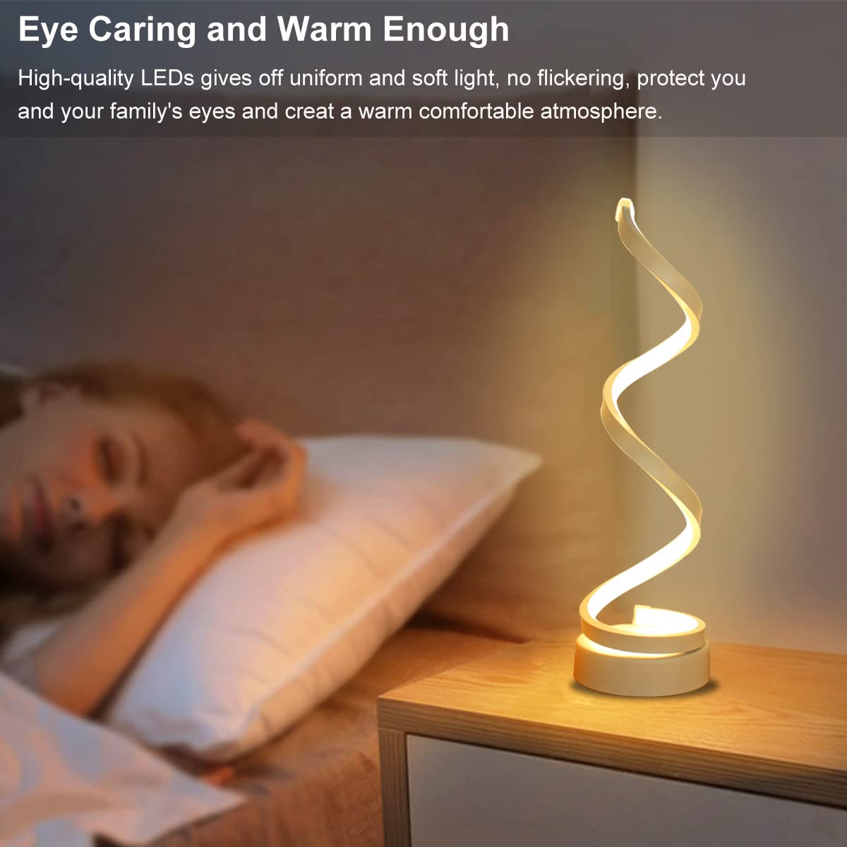 Besketie Modern Spiral Table Lamp, Dimmable Table Lamps For Bedroom, 12W Led Desk Lamp For Living Room, 3 Colors 10 Brightness B