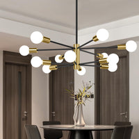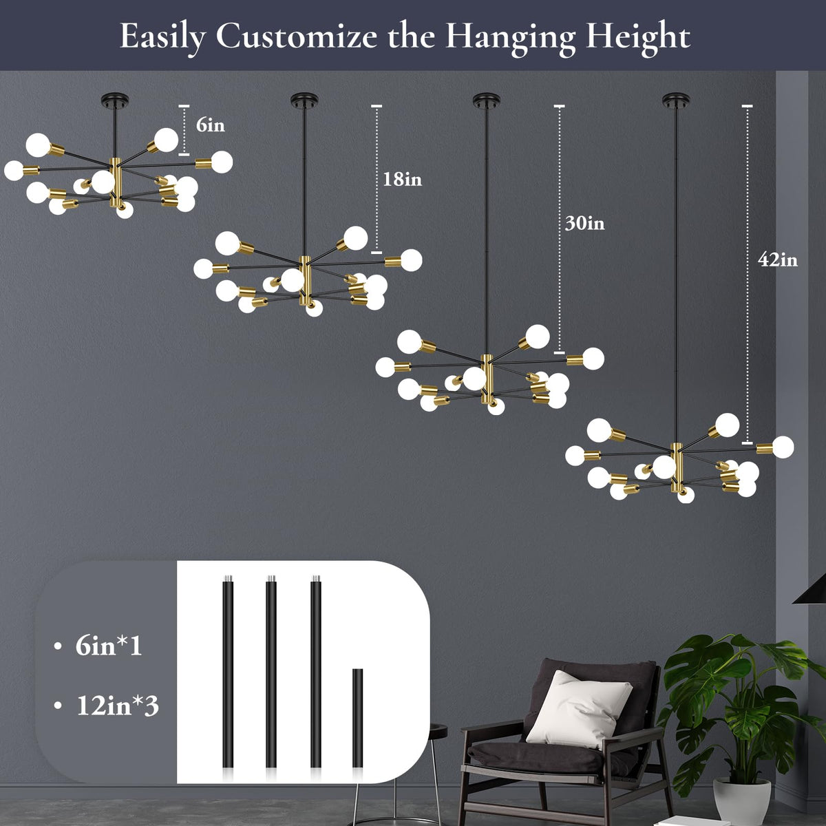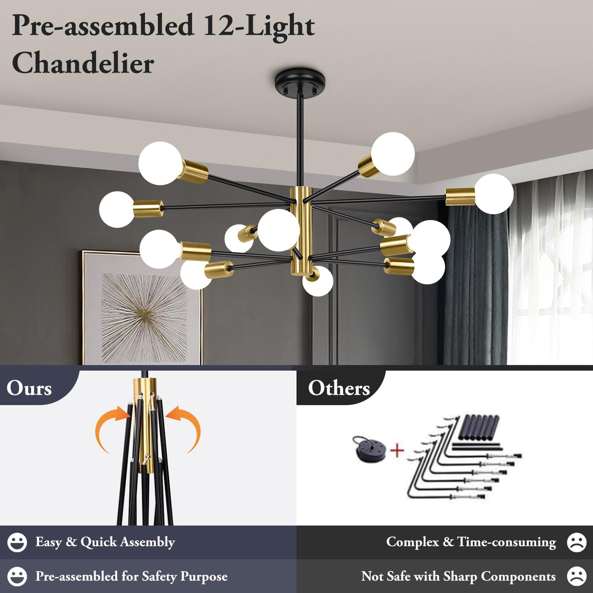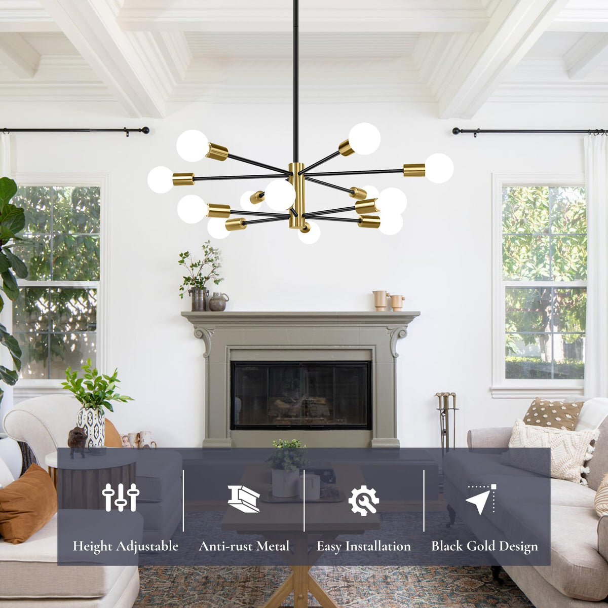Beslowe 12-Light Modern Sputnik Chandelier, Mid Century Black & Gold Chandeliers Lighting, Farmhouse Ceiling Hanging Light Fixtu