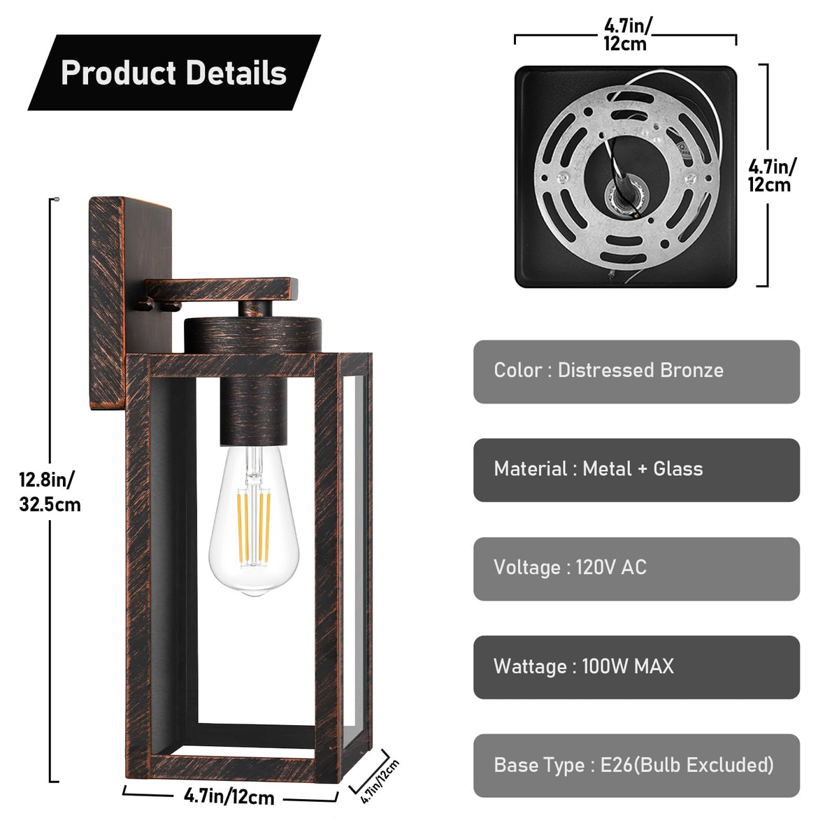 Beslowe 2-Pack Outdoor Wall Light Fixtures, Exterior Waterproof Wall Lanterns, Porch Sconces Wall Mounted Lighting With E26 Sockets & Glass Shades, Modern Wall Lamps For Patio Front Door, Brown