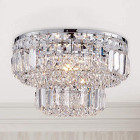 Elevate your home decor with the Bestier modern chrome flush mount chandelier ceiling light fixture. Designed to impress, this stunning light fixture features strings of luxurious rectangular and round ball crystals that create a dazzling effect. The polished chrome finish beautifully complements the clear crystals, adding a touch of elegance to any space. Its compact size makes it ideal for various rooms, including dining rooms, living rooms, bedrooms, and offices.