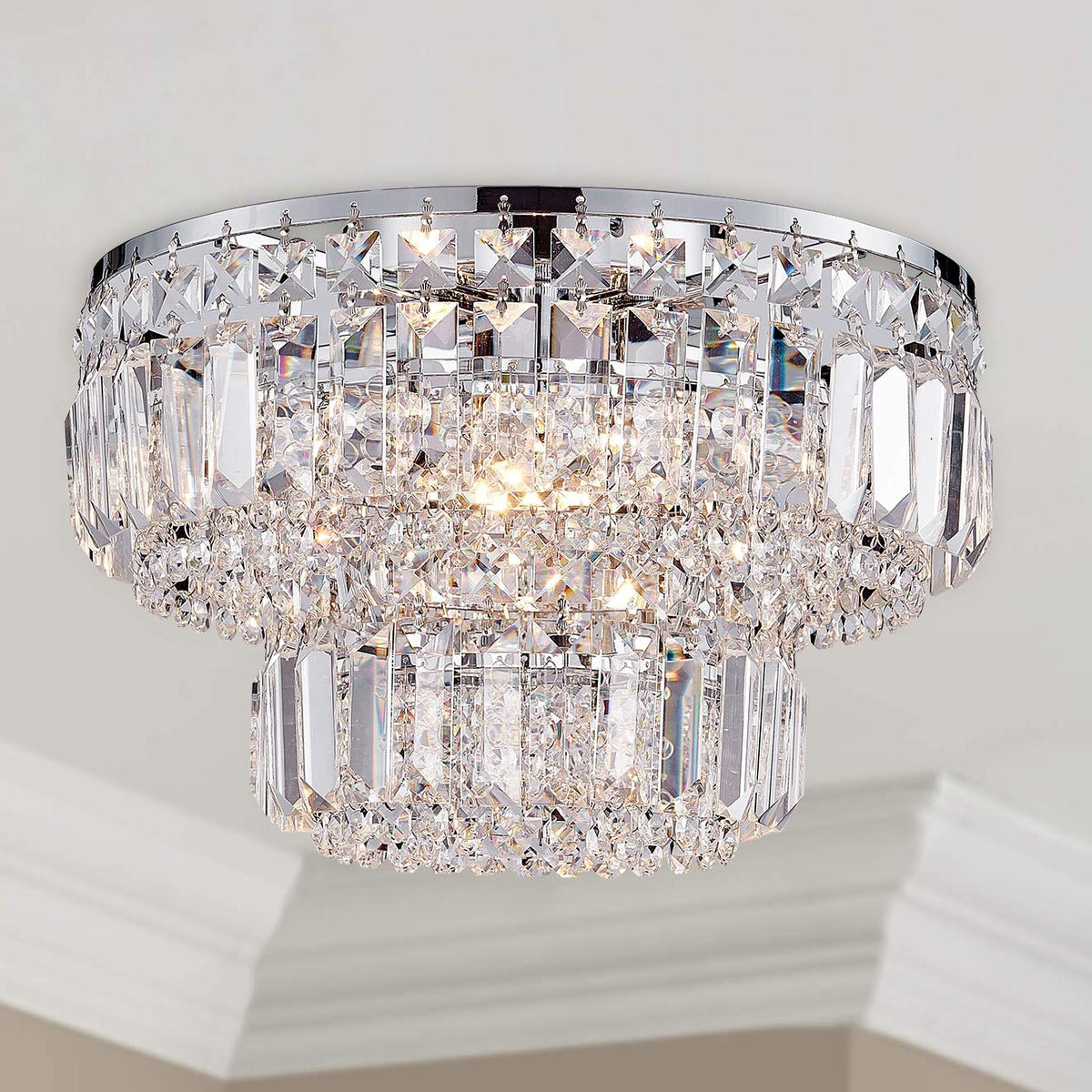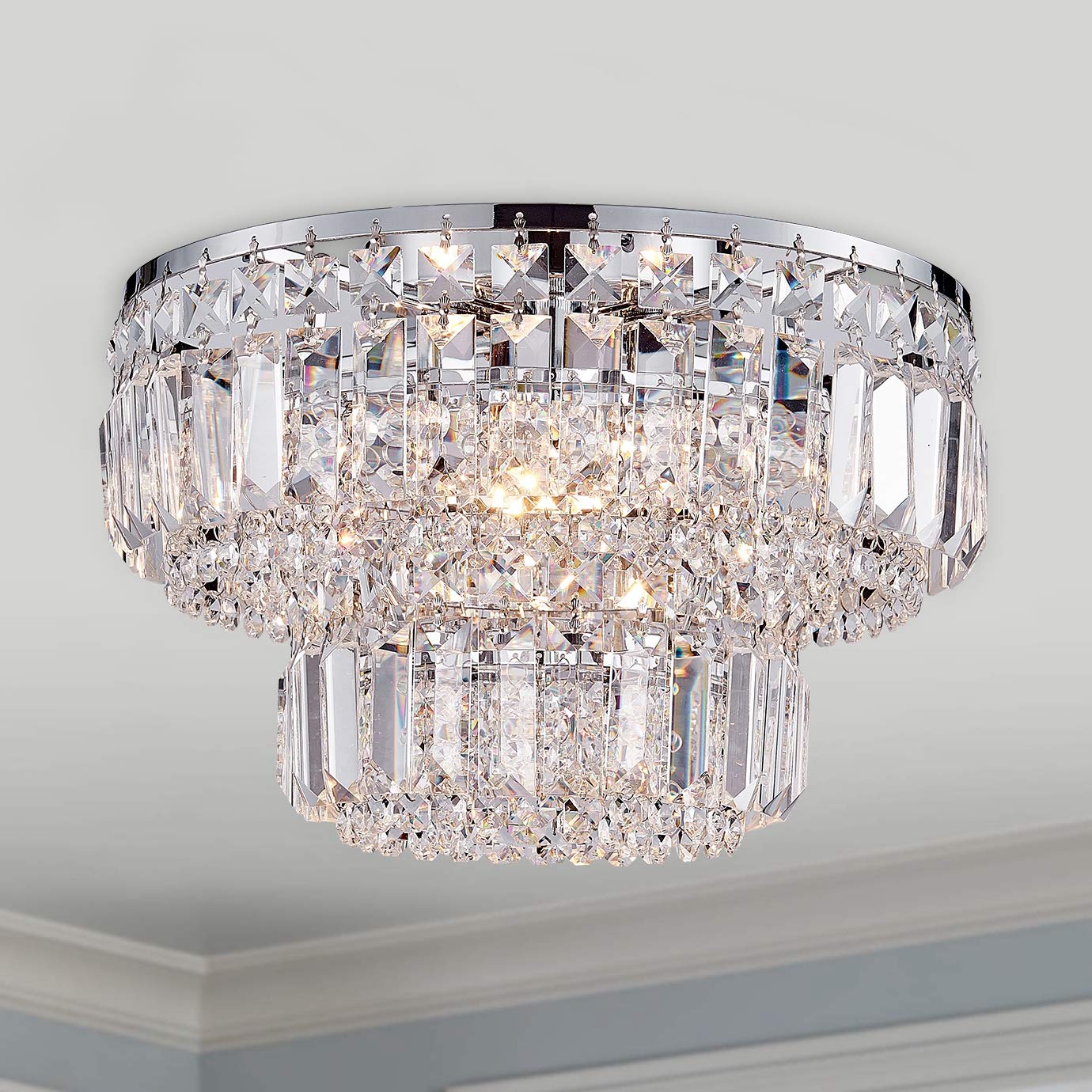 Q: What rooms are suitable for this chandelier?A: The Bestier chrome flush mount chandelier is ideal for various settings, including dining rooms, bathrooms, bedrooms, living rooms, and foyers.