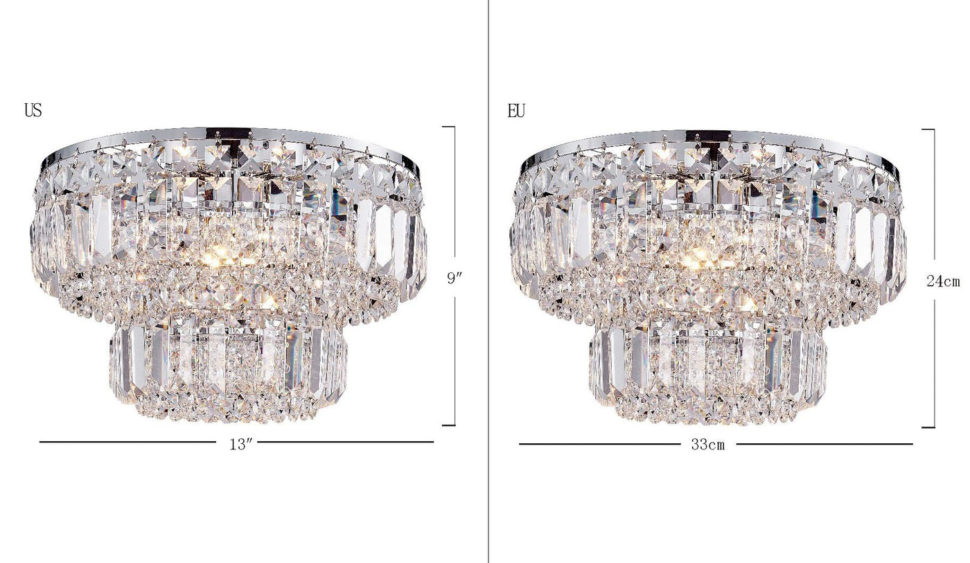 Bestier Modern Chrome Crystal Flush Mount Chandelier Led Light For Dining Room & Bedroom