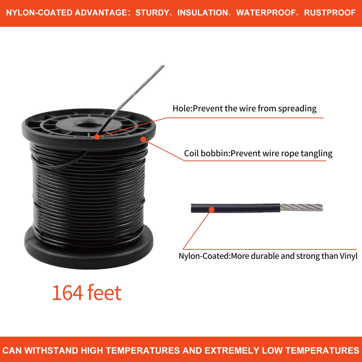 Safe and Durable: Made from high-quality 304 stainless steel with a nylon coating, this cable is insulated, waterproof, and rust-resistant, ensuring long-lasting performance.