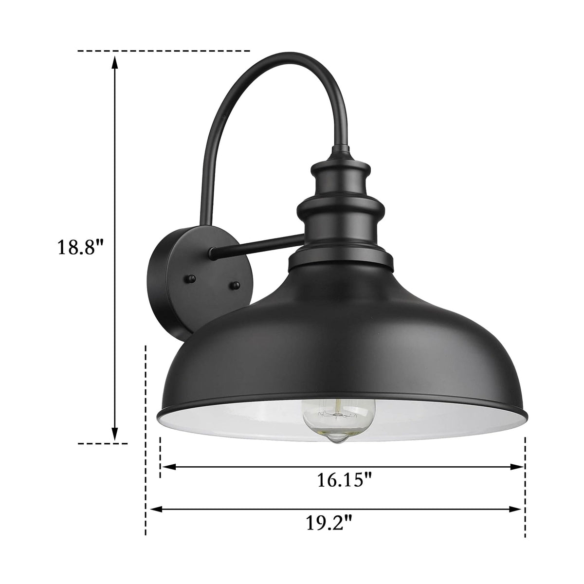 Q: What are the dimensions of the Bestshared Large Farmhouse Barn Light?A: The Bestshared Large Farmhouse Barn Light measures 19.2 inches in length, 16.15 inches in width, and 18.8 inches in height, making it a suitable choice for various outdoor spaces.