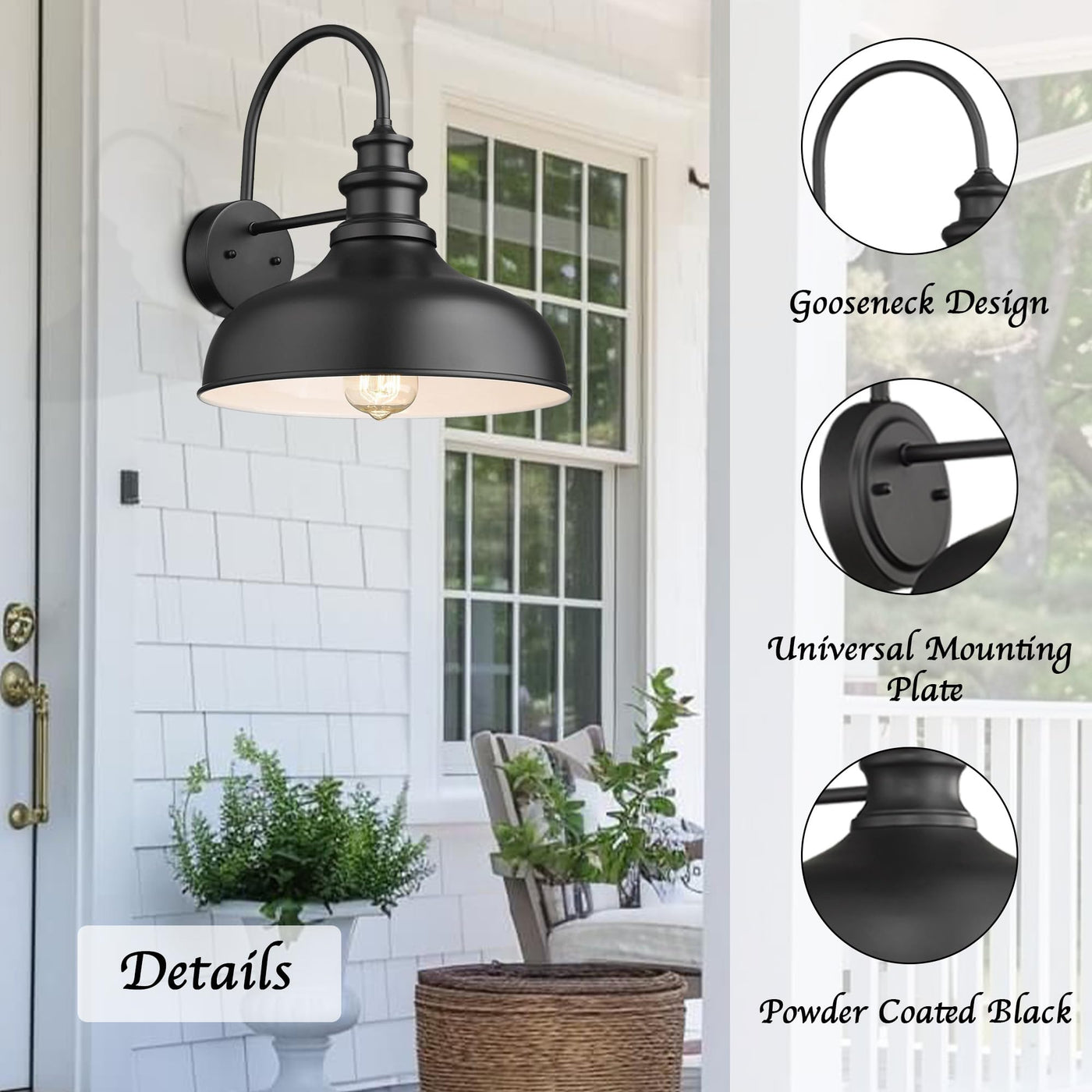 - **Charming Farmhouse Design**: The classic curved top cover and gooseneck arm of this wall sconce create a timeless appeal, making it a versatile lighting solution for any room. Perfectly complements various decoration styles while enhancing your home's ambiance.