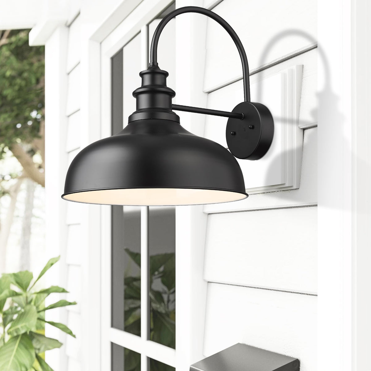 Bestshared 16” Dome Outdoor Barn Lights - Industrial Wall Sconces, Black+White (2 Pack)