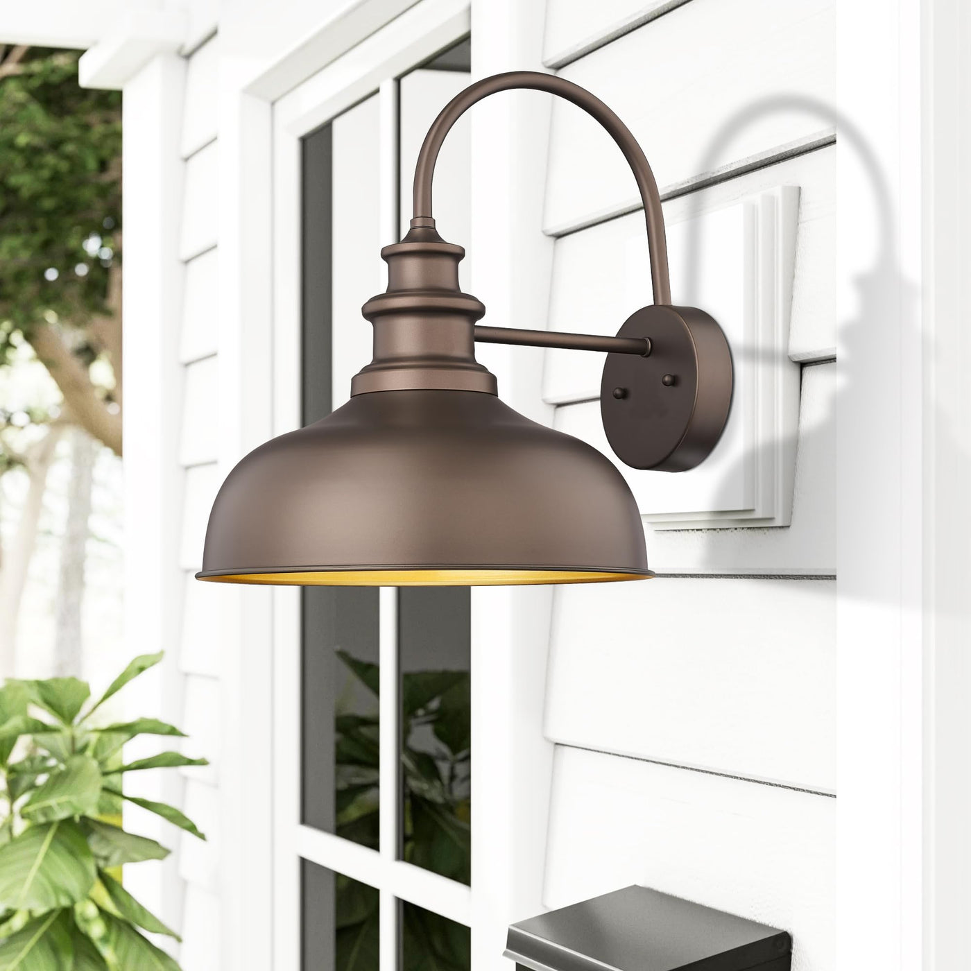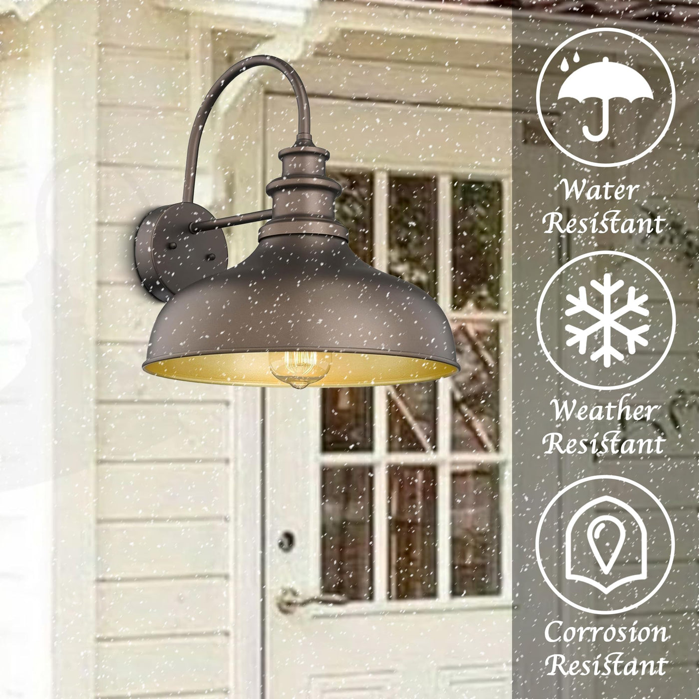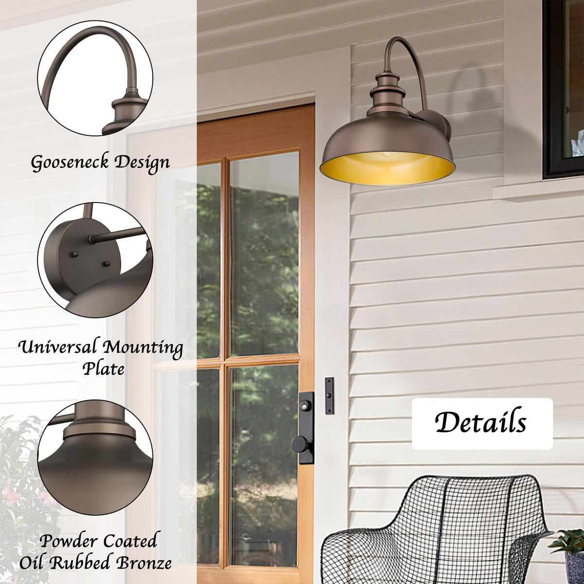 Bestshared Outdoor Gooseneck Barn Light, Vintage Black Wall Lantern, Orb+Gold, 1 Pack