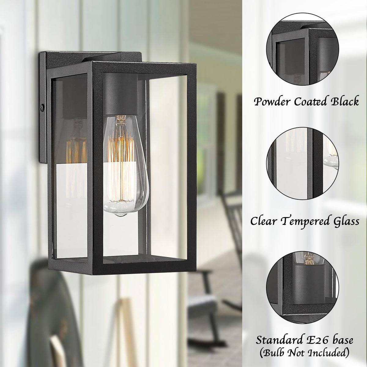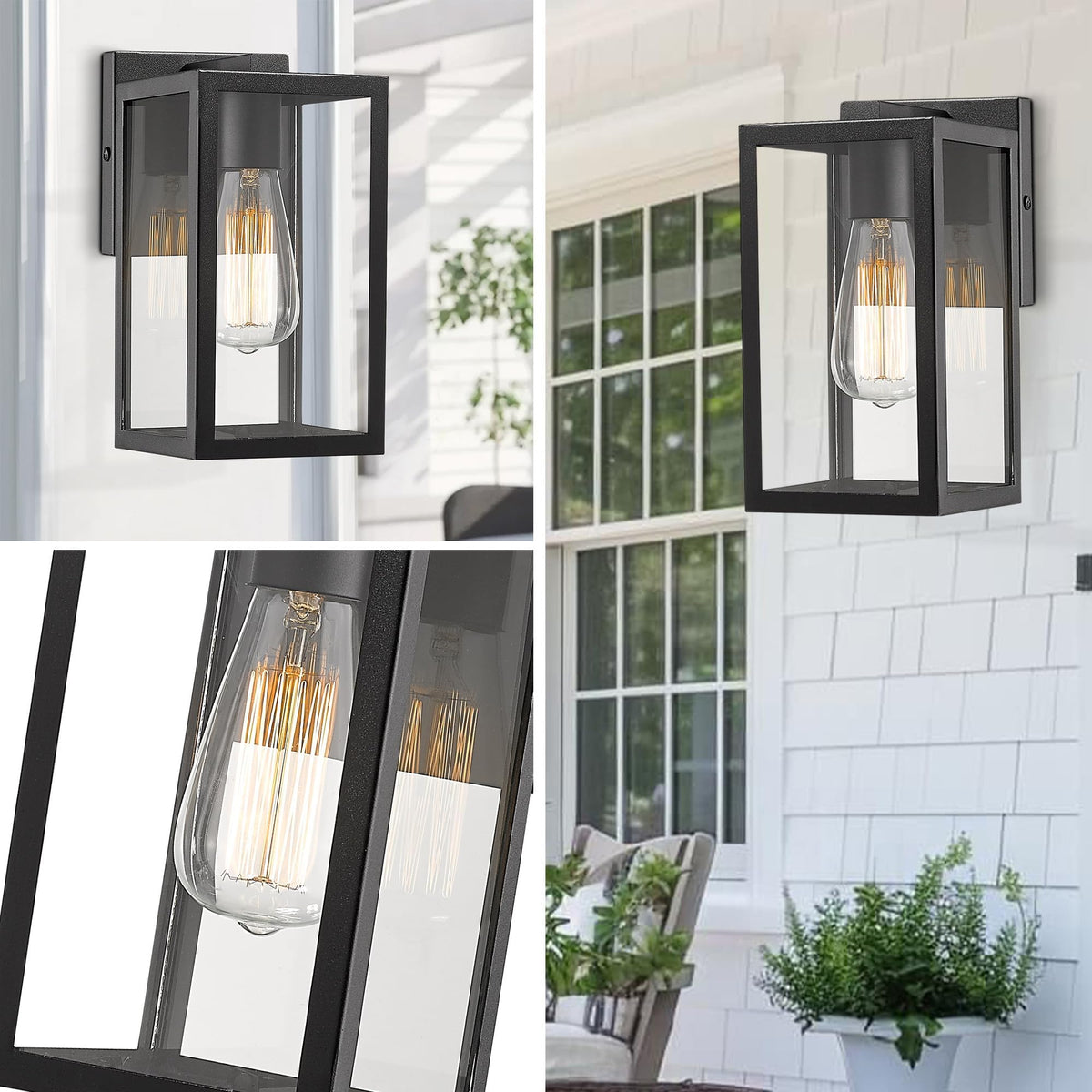 Bestshared Outdoor Wall Light Sconce - 1-Light Black Lantern Fixture, 2 Pack For Porch & Home