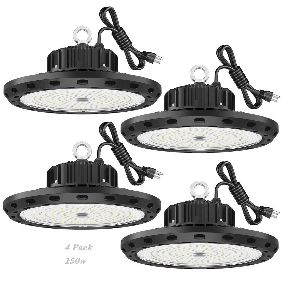 BEULT 4 Pack UFO LED High Bay Light 150W (600W MH/HPS Equiv.), 22500lm, 5000K Daylight, AC100-277V, with 5 Cable & Ring Hook, I