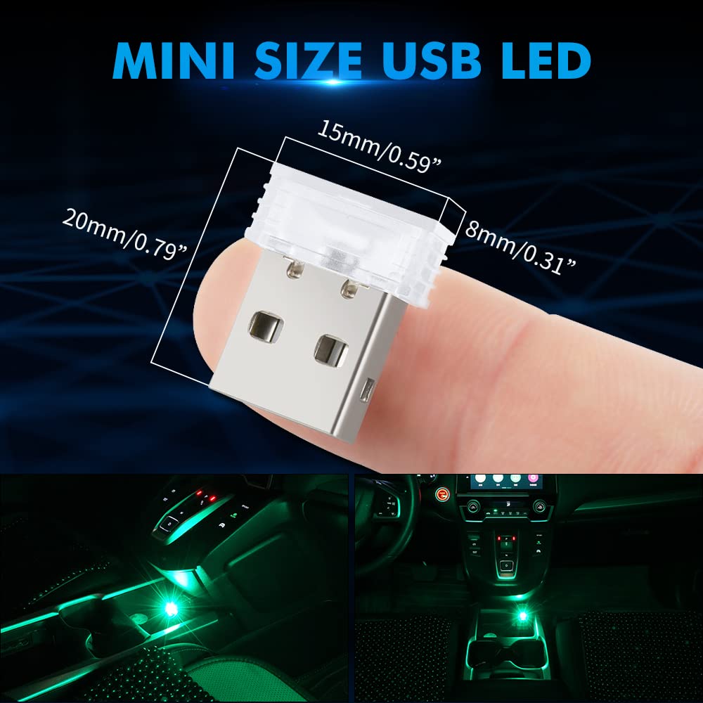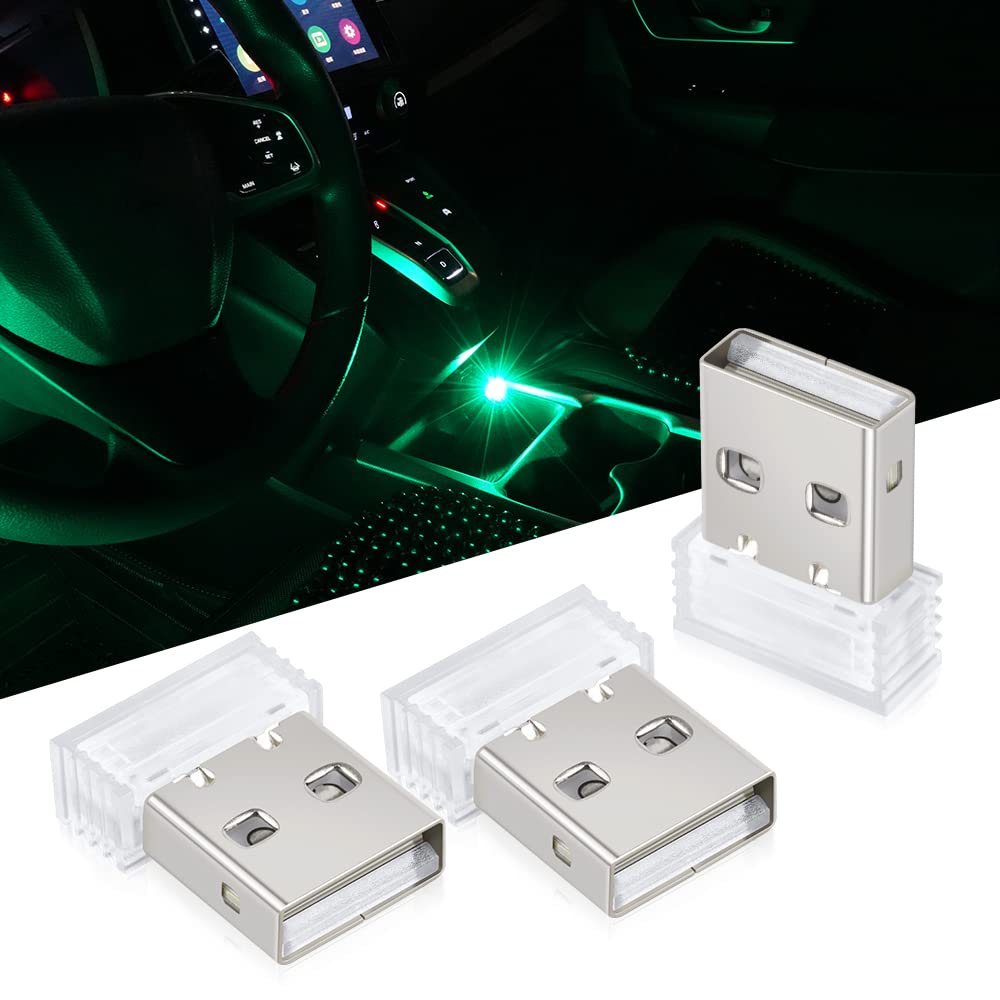 Bevinsee 3 Pcs Mini Usb Car Light, Universal Portable Usb Atmosphere Light Dc 5V Smart Usb Led Car Interior Lighting Kit For Laptop Keyboard Night Home Office Decoration, Green
