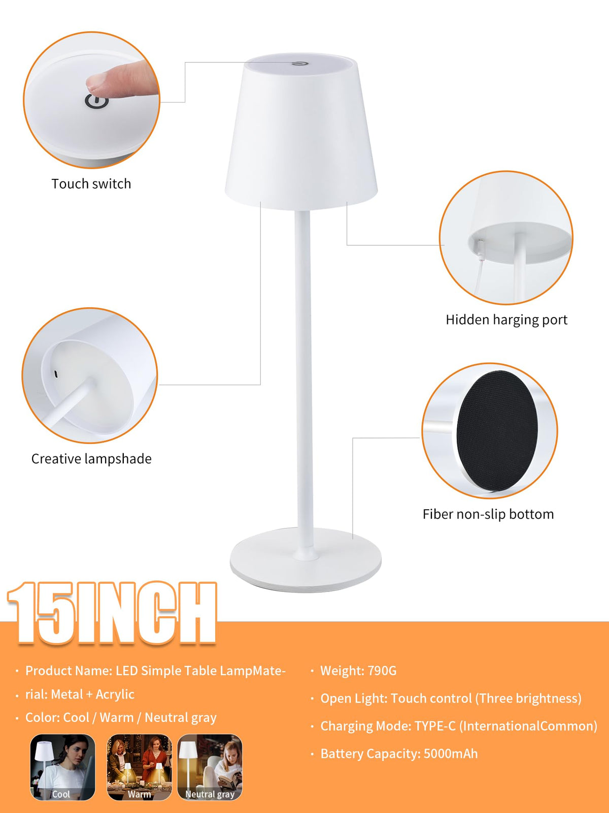 Bgfhome Cordless Led Table Lamp - Rechargeable Touch Night Light, Minimalist White Design