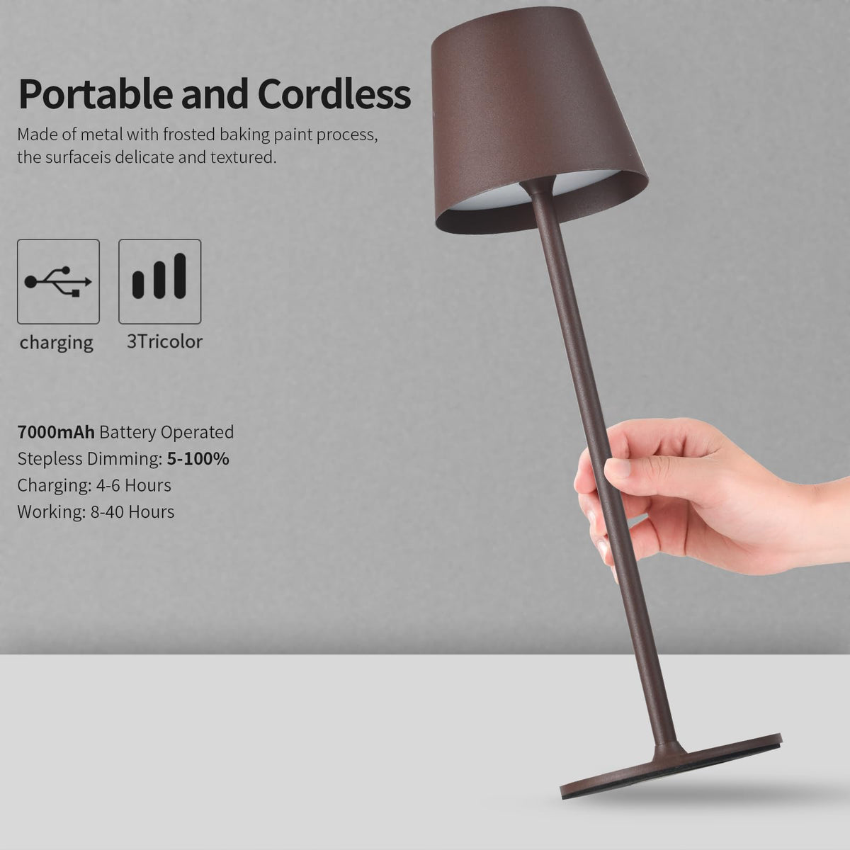 Bgfhome Cordless Table Lamp Led Desk Lamp,5000Mah Rechargeable Touch Night Light Wireless Minimalist Design For/Restaurant/Bedro