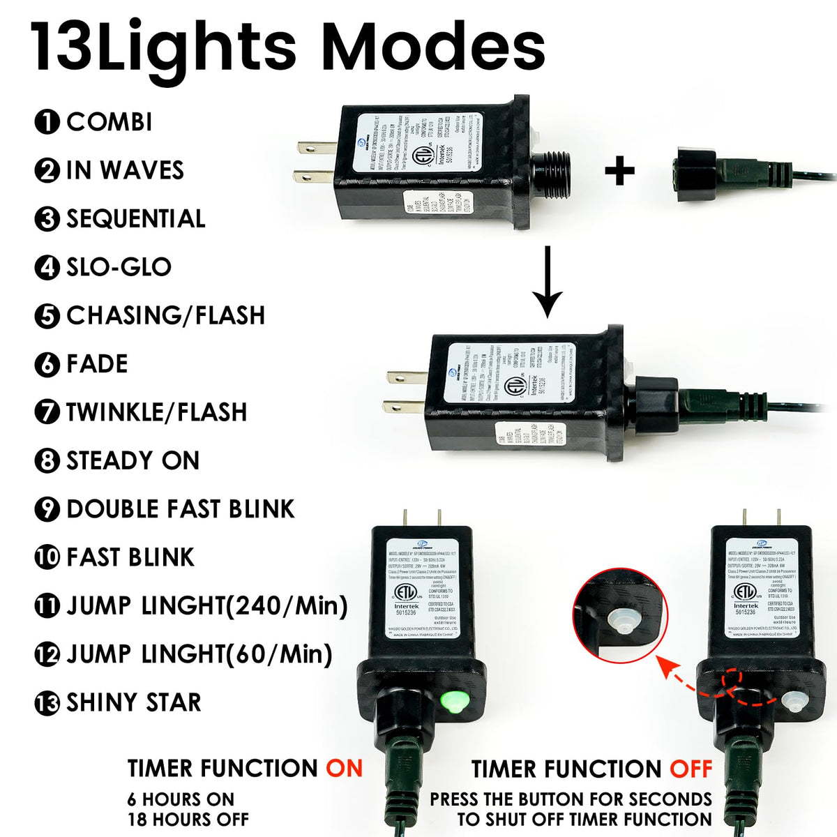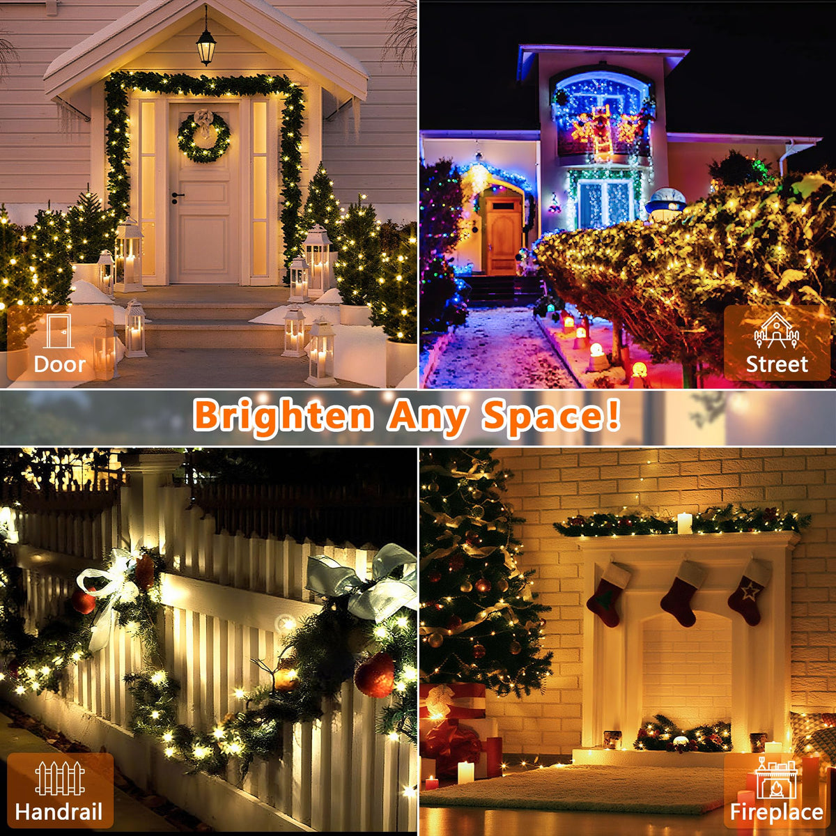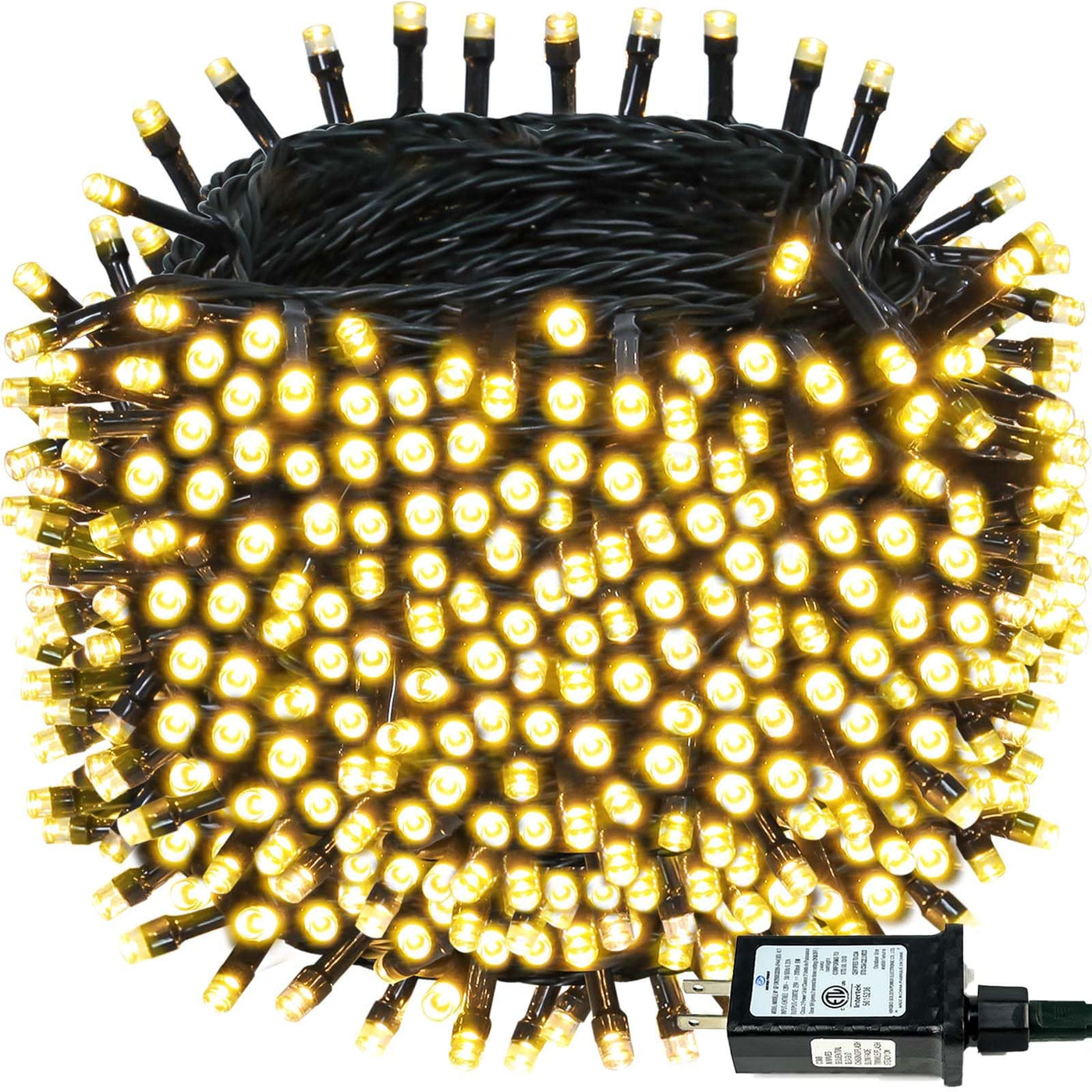Bhclight Extra-Long Connectable 99Ft 500Led Christmas String Lights Outdoor/Indoor, Timer & Memory & 13 Modes, Warm White String Lights Waterproof Green Wire Tree Lights For Xmas Holiday Party