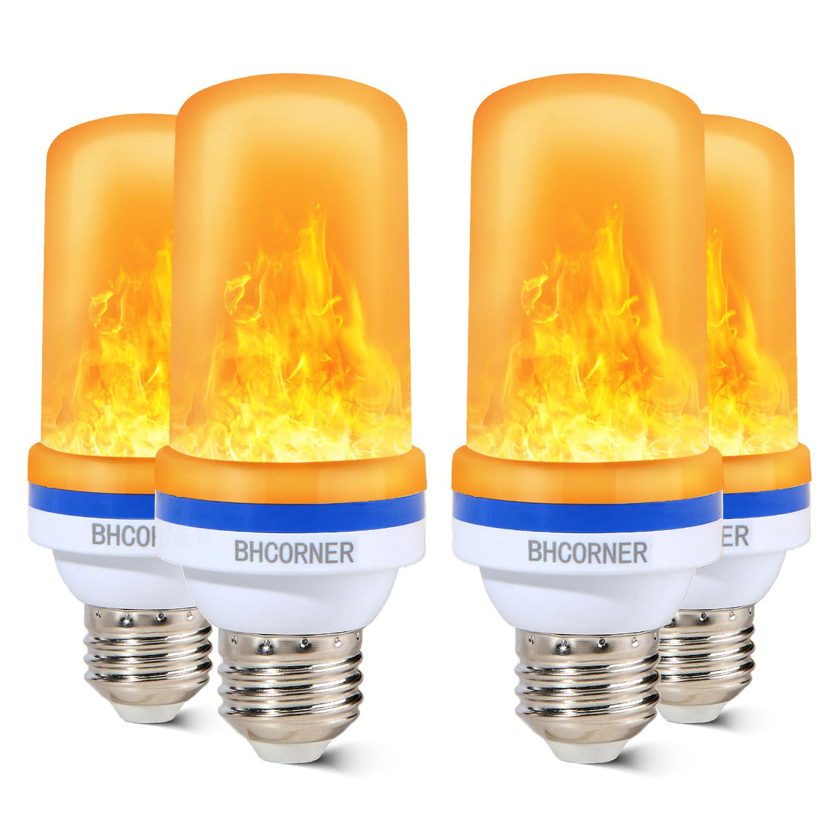 Bhcorner [Upgraded] Led Flame Effect Light Bulbs - Halloween Decorations Outdoor Light Bulb,E27 Base Christmas Flickering Light Bulbs Outdoor,Halloween Decorations Night Fire Light Bulb (4 Pack)