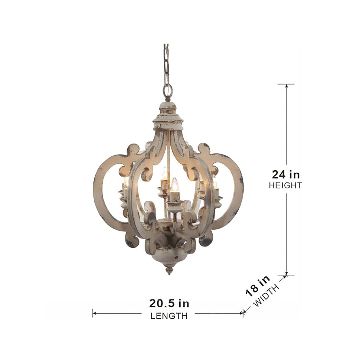 Transform your space with the exquisite Bhome 6-Light Wood Chandelier, designed to bring a touch of rustic elegance to any room. This beautifully crafted chandelier combines the warmth of sculpted fir wood with the durability of iron, making it a stunning centerpiece for your bedroom, entrance, kitchen, or dining room. Its sophisticated French country appeal and antique whitewash finish effortlessly enhance your home décor, creating an inviting atmosphere for family and guests alike.