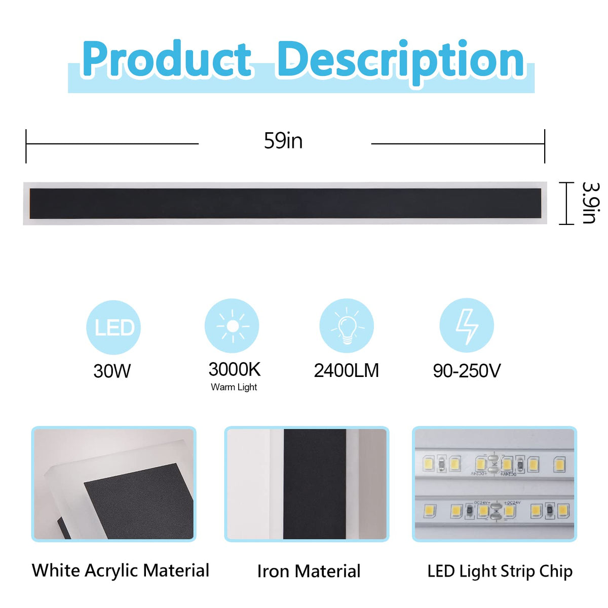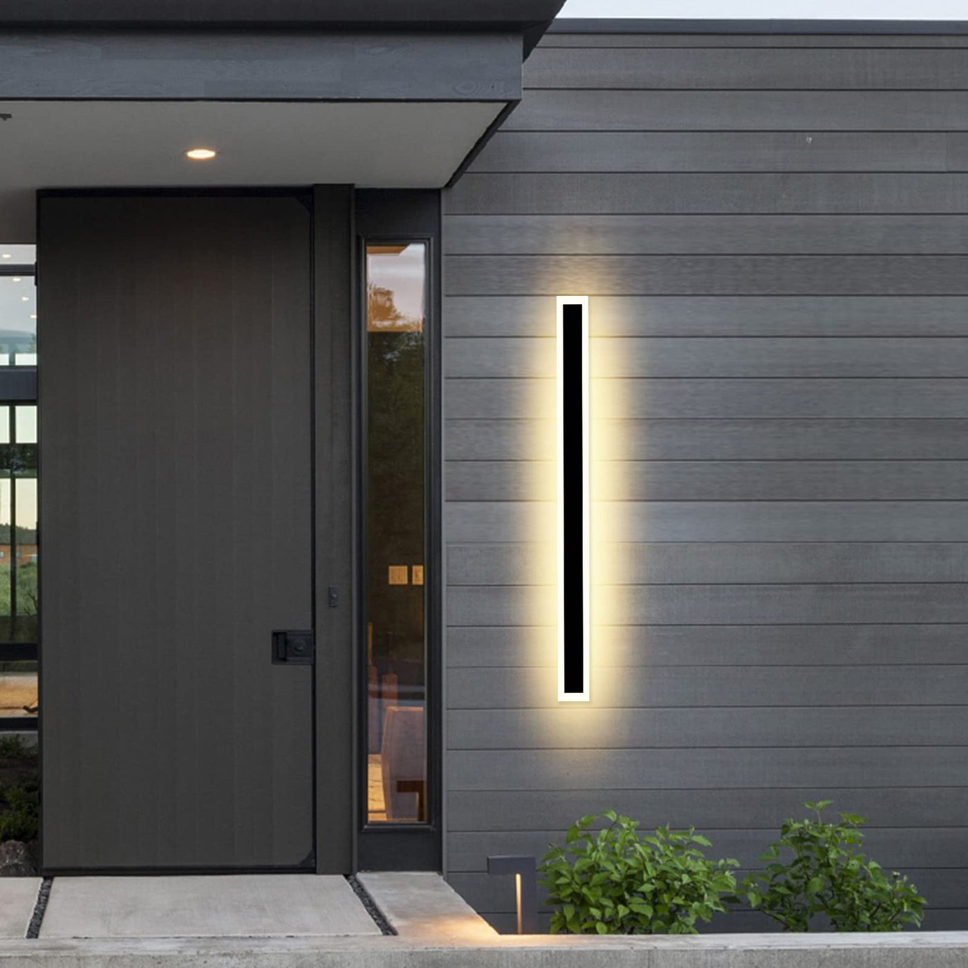 Bieocur Outdoor Wall Sconce Led Modern Outdoor Light 30W Black Exterior Light Fixture 59 In Frosted White Acrylic Wall Lighting Watetproof Suitable For Porch Patio Garage