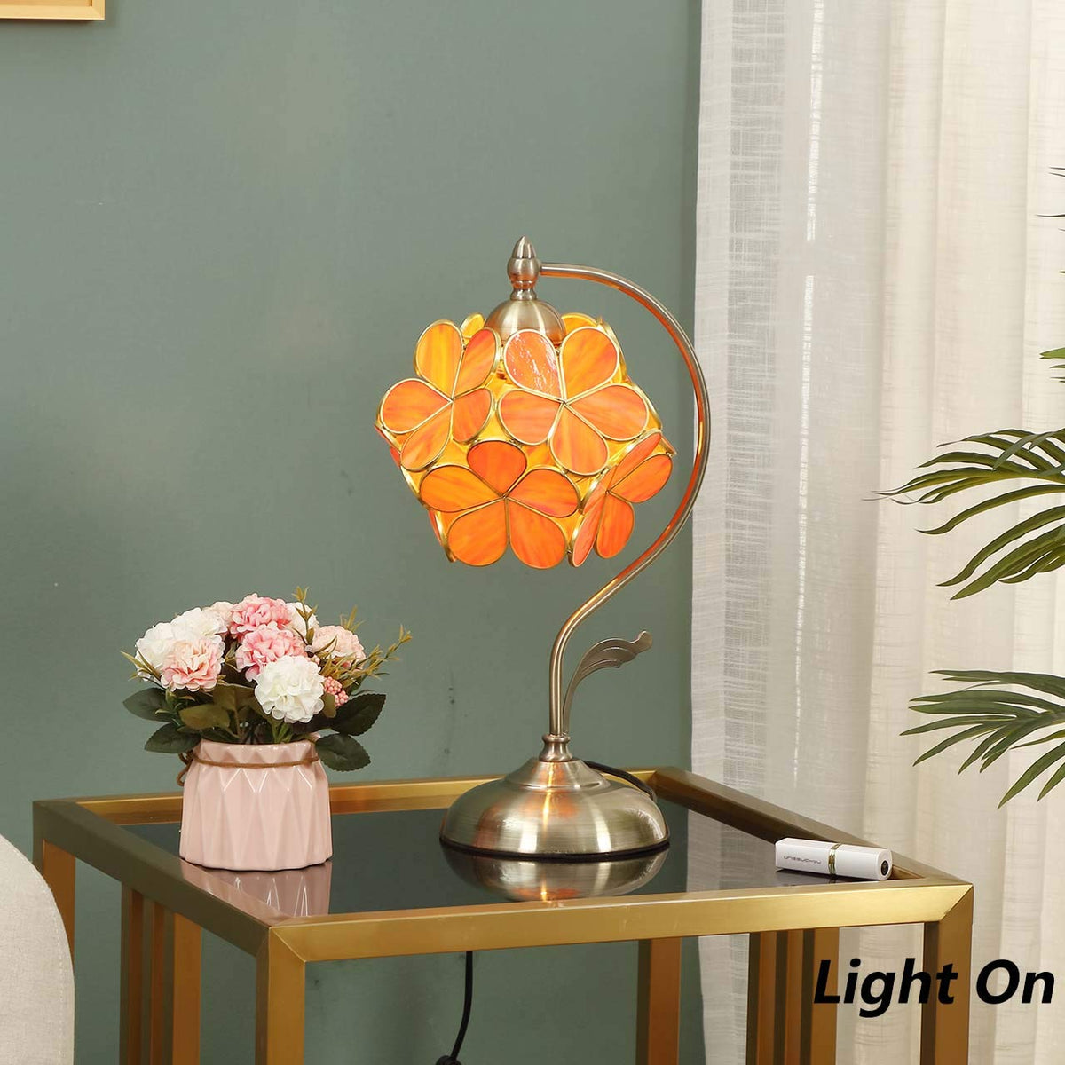 Bieye L10753 Tiffany Style Stained Glass Flower Petal Table Lamp With Brass Base For Home D Cor (Orange, 8'' Cherry Blossom)
