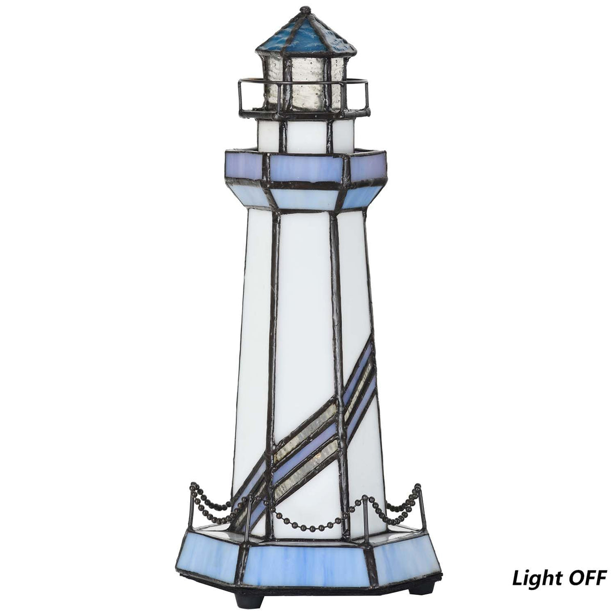 Bieye L10776 Lighthouse Tiffany Style Stained Glass Accent Table Lamp Night Light For Home Decoration (5X5X11, Blue)