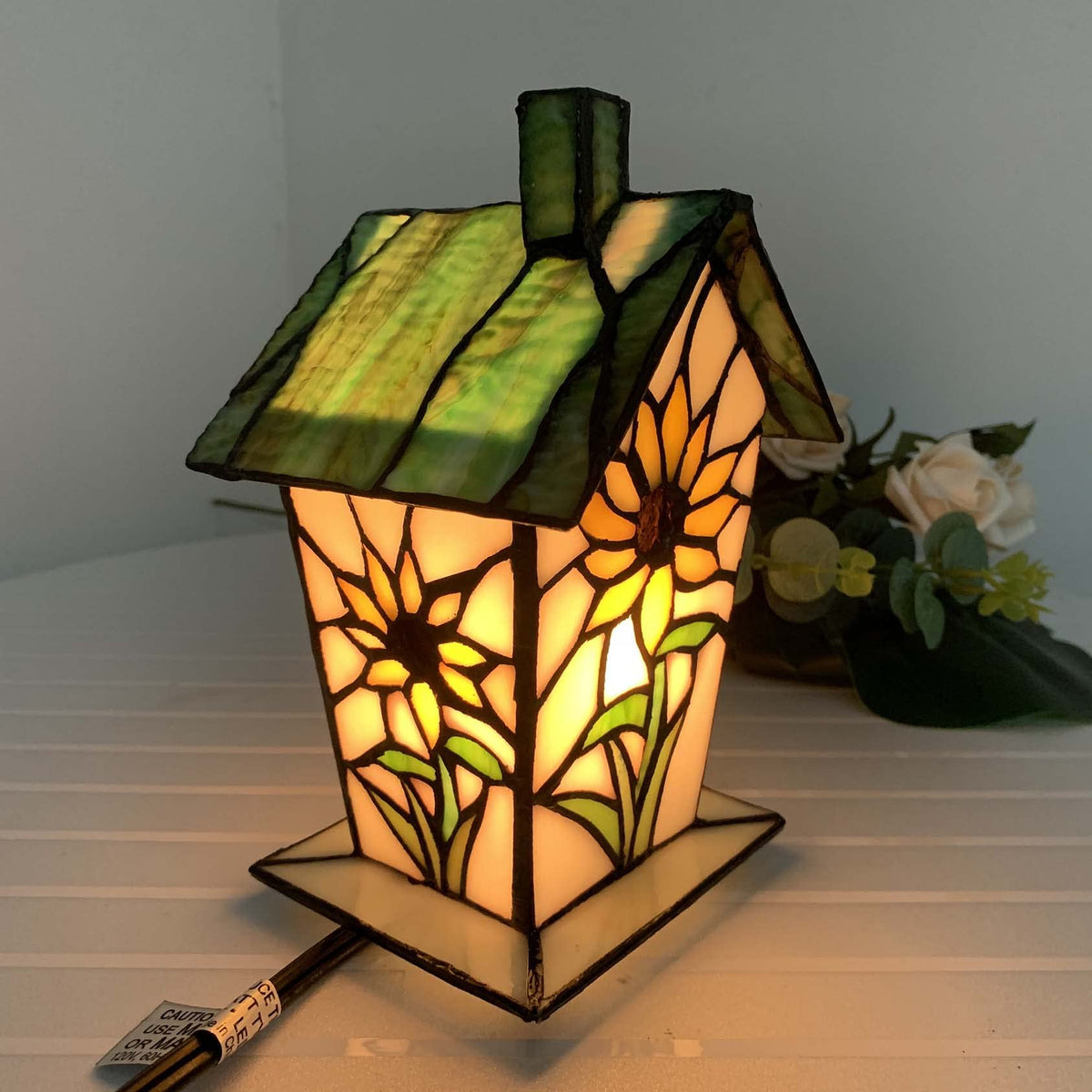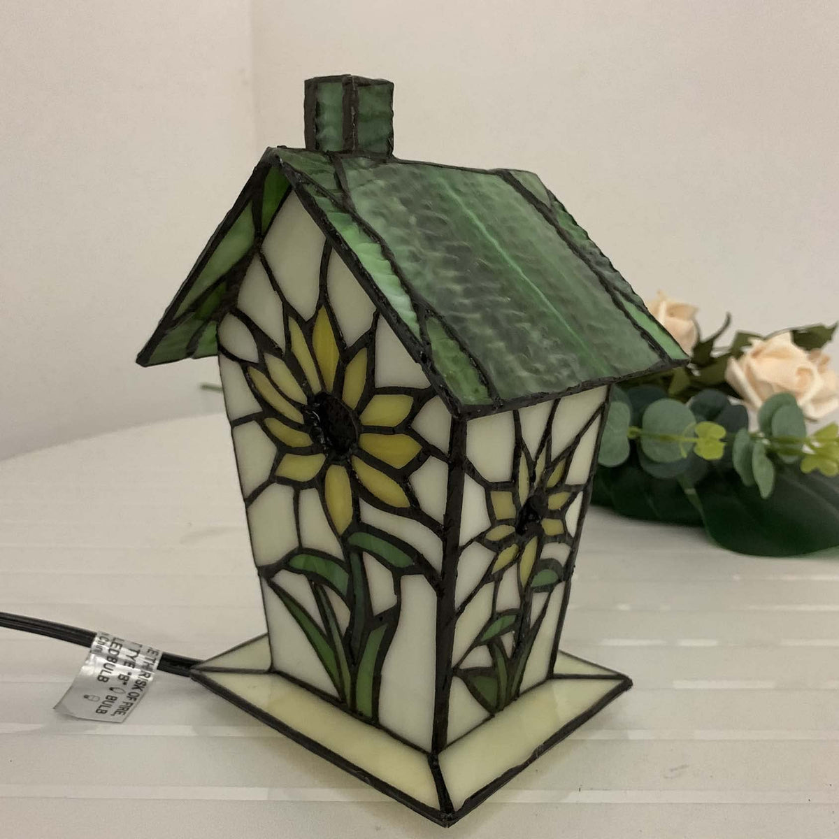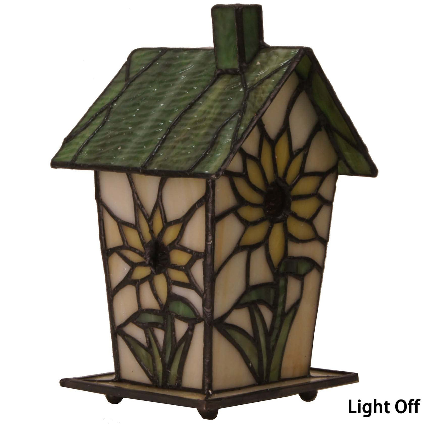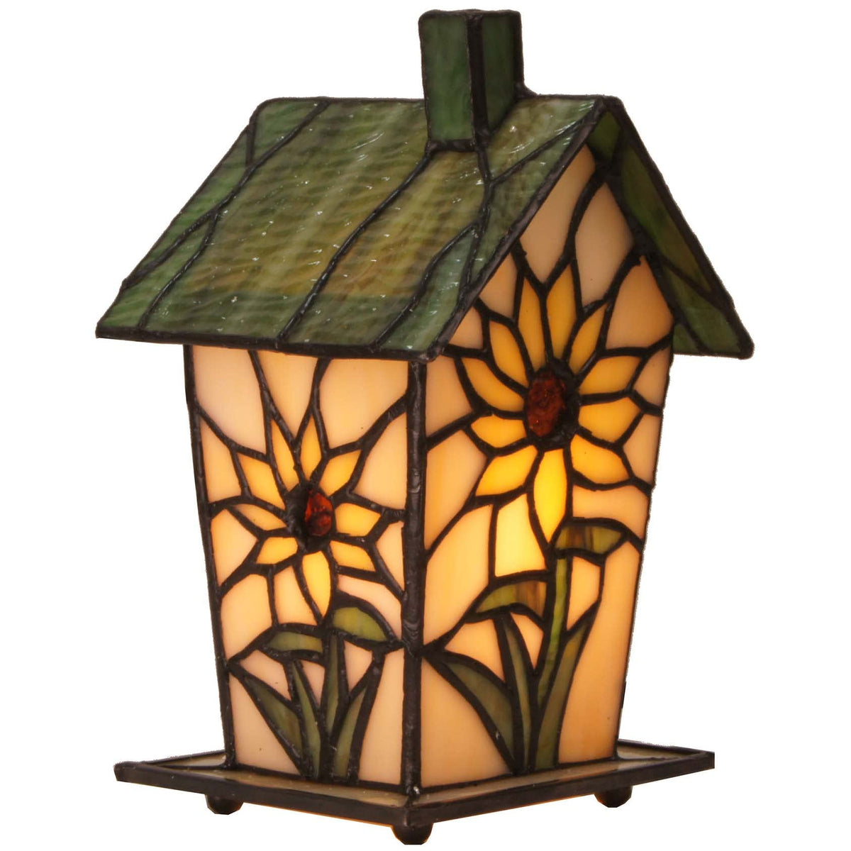 Bieye L10781 Tiffany Style Stained Glass Birdhouse Table Lamp For Home Decor (7-Inch High, Sunflower)