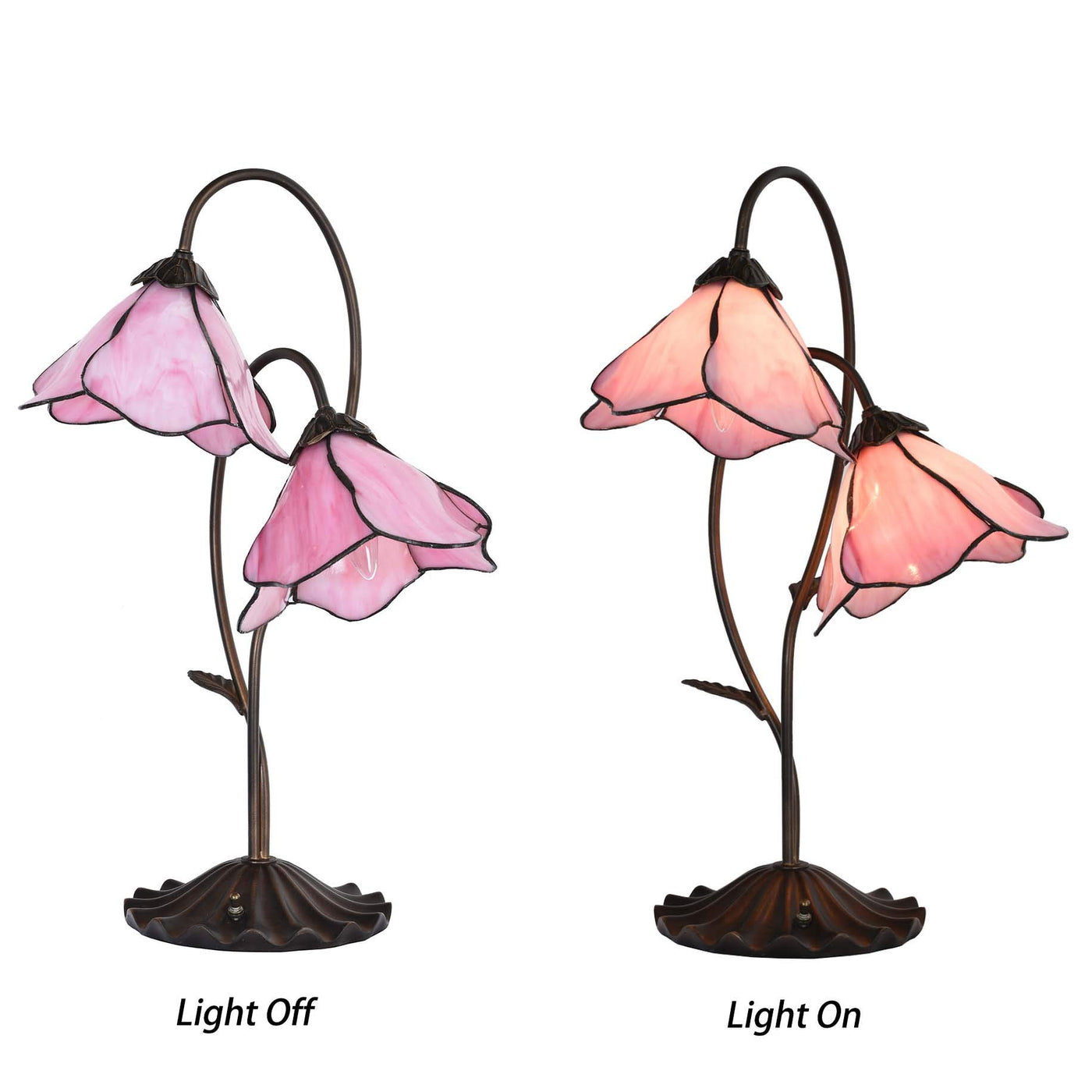 Pink Flowers Represent Grace, Gentility, And Happiness. Regardless Of The Shape Of The Flower - From The Tight, Small Buds Of A Pink Garden Rose To The Delicate, Open Petals Of A Pink Peony In Full Bloom - Pink Blossoms Convey Youth, Innocence, And Joy. Shop For Pink Flowers. This Is A Pink Flower Table Lamp. The Pink Flowers Are Made Of Stained Glass, And Each Glass Petal Is Baked And Bent; There Is A 4-Way Rotary On The Lily Pad Base And An In-Line Switch That Control The Light On And Off Separately. This Is Not Only A Table Lamp At Night But Also A Gorgeous Ornament In The Daytime. You Definitely Will Receive Many Compliments. Frequently Asked Questions: Q: Why The Color Of Stained Glass Is Different Between Turning The Light On And Off. A: Most Of The Stained Glass Is Different With Ordinary Glass, Because It Doesnt Have Pure Color. Usually, The Colors Are Mixed Together, And The Color Stripes Inside The Glass Are Very Real And Natural. Moreover, The Stained Glass Is Different In Color When The Light With Different Color Temperatures Through The Glass Sheet. Q: Why Tiffany Glass Feels/Sounds Like Plastic Even Though Its Glass? A: The Lampshade Is Made Using The Copper Foil Technique. So Each Glass Piece Is Wrapped Tightly Using Copper Foil Tape. Afterward, The Wrapped Glass Piece Is Welded With Tin Solder. As A Result, The Glass Can'T Vibrate And Make A Sound Like Glass. However, If You Gently Tap The Lampshade By Using A Metal Piece, Such As A Fork, You Can Feel The Glass Tone Better. If You Hold The Lampshade, You Will Notice The Difference In Temperature And Weight Between Glass And Plastic.