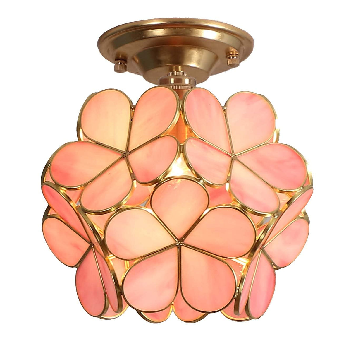 Bieye L10822 Flower Petals Tiffany Style Stained Glass Close To Ceiling Light, 8-Inch Wide (Pink)