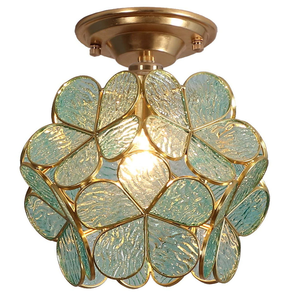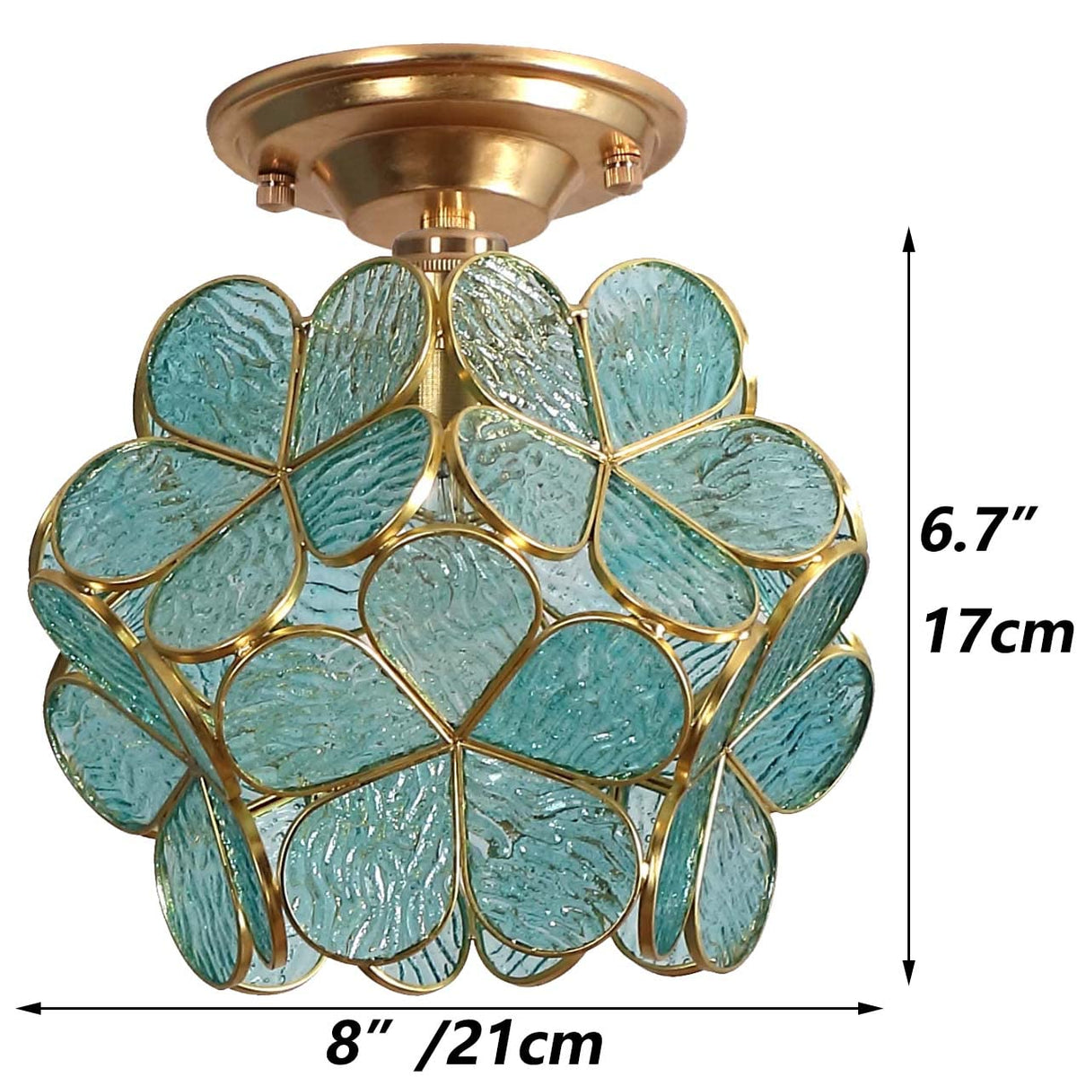 Bieye L10824 Flower Petals Tiffany Style Stained Glass Close To Ceiling Light, 8-Inch Wide (Blue)