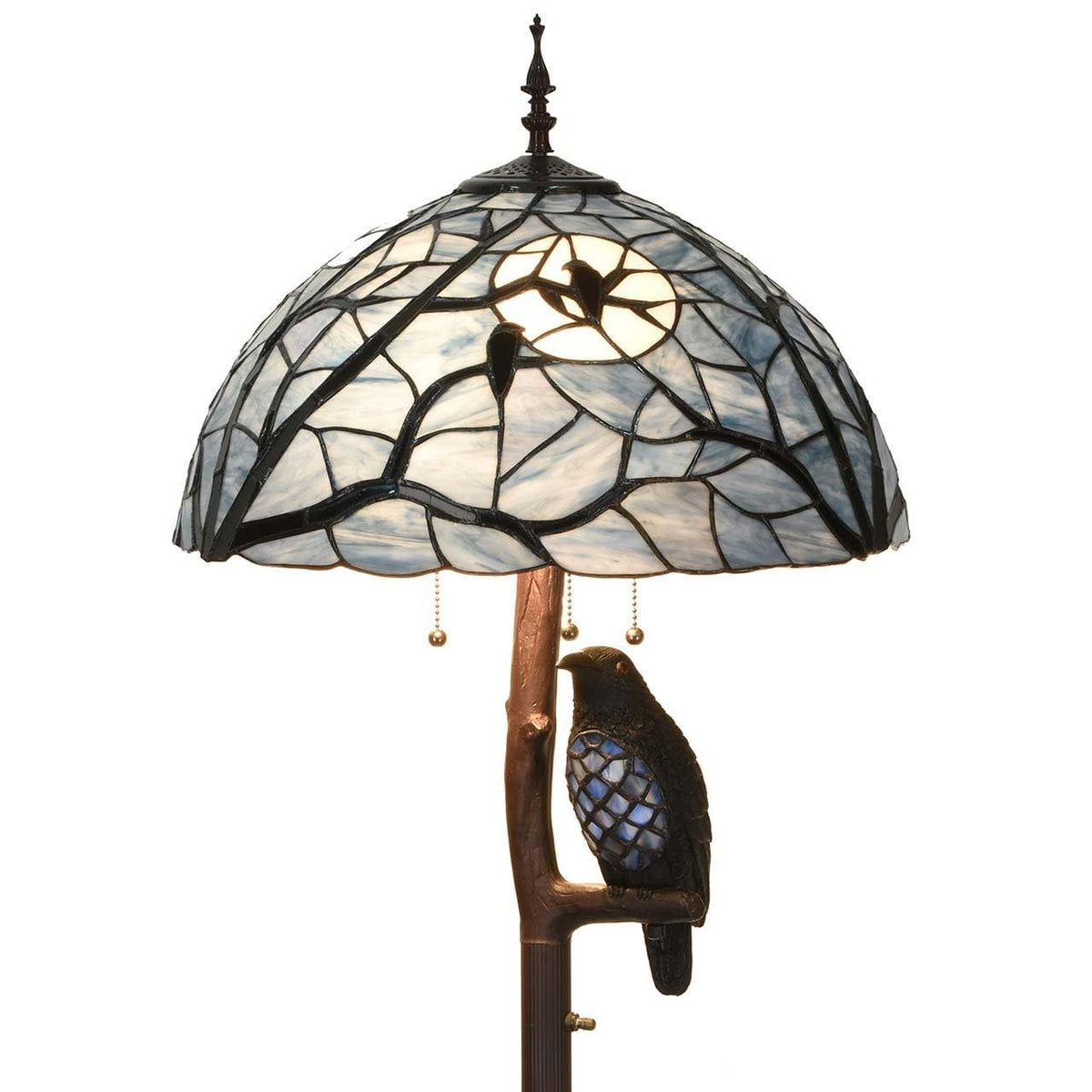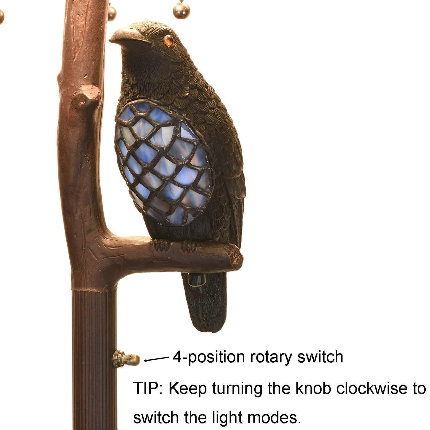 Bieye L10882 Ravens Sitting On Bare Tree Branch Against Full Moon Tiffany Style Stained Glass Floor Lamp With Raven Night Light