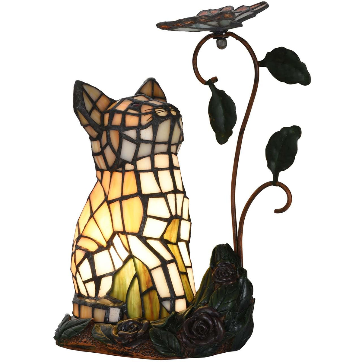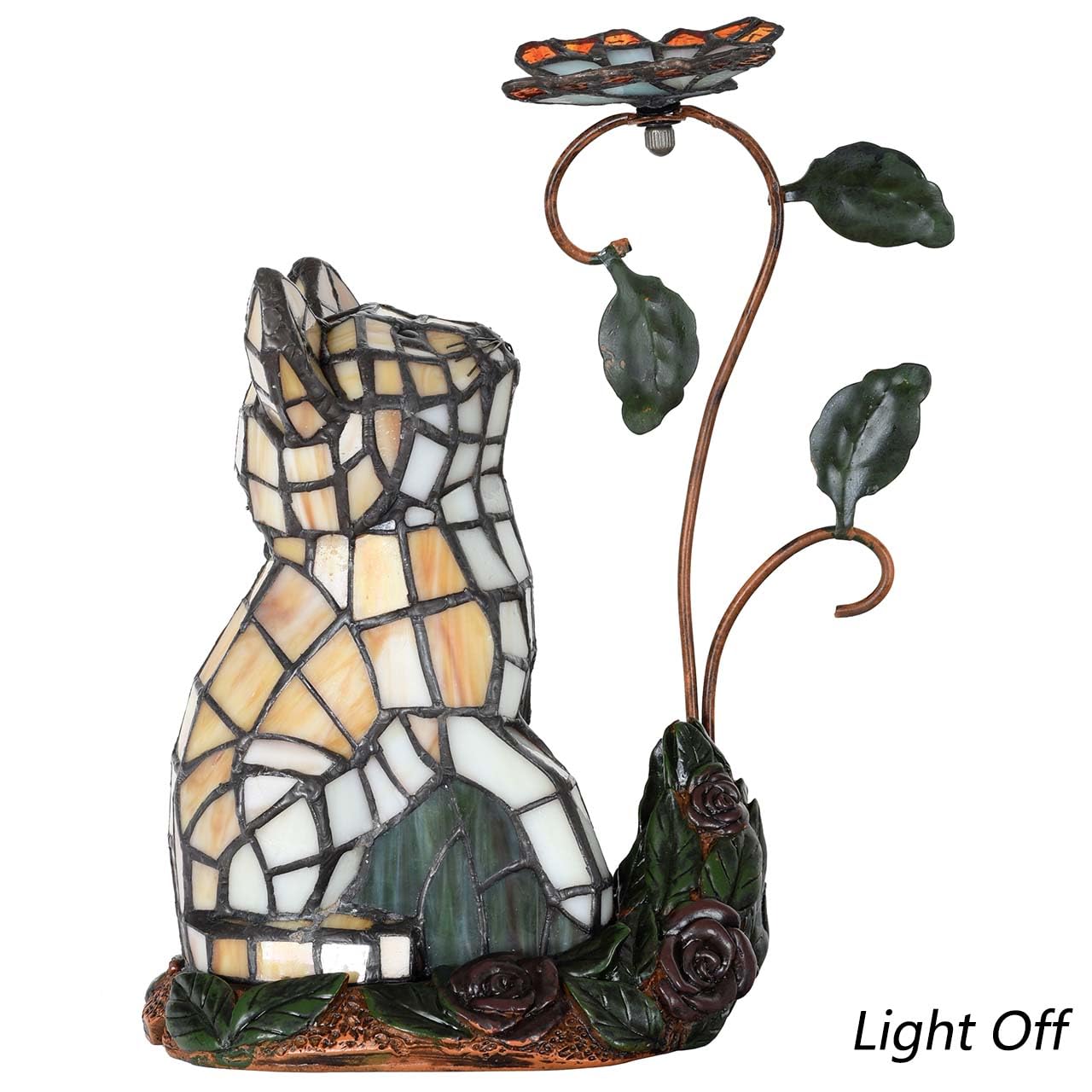 Transform Your Living Space Into A Realm Of Enchantment With Our Tiffany-Style Stained Glass Cat Accent Table Lamp. Standing At A Charming 9.5 Inches Tall, This Lamp Is Not Just A Source Of Light; It'S A Captivating Work Of Art That Tells A Heartwarming Story Of An Orange Cat And A Fluttering Butterfly.