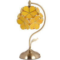 Bieye L10910 Tiffany Style Stained Glass Flower Petal Table Lamp With Brass Base For Home D Cor (Yellow Orange, 8'' Cherry Blos