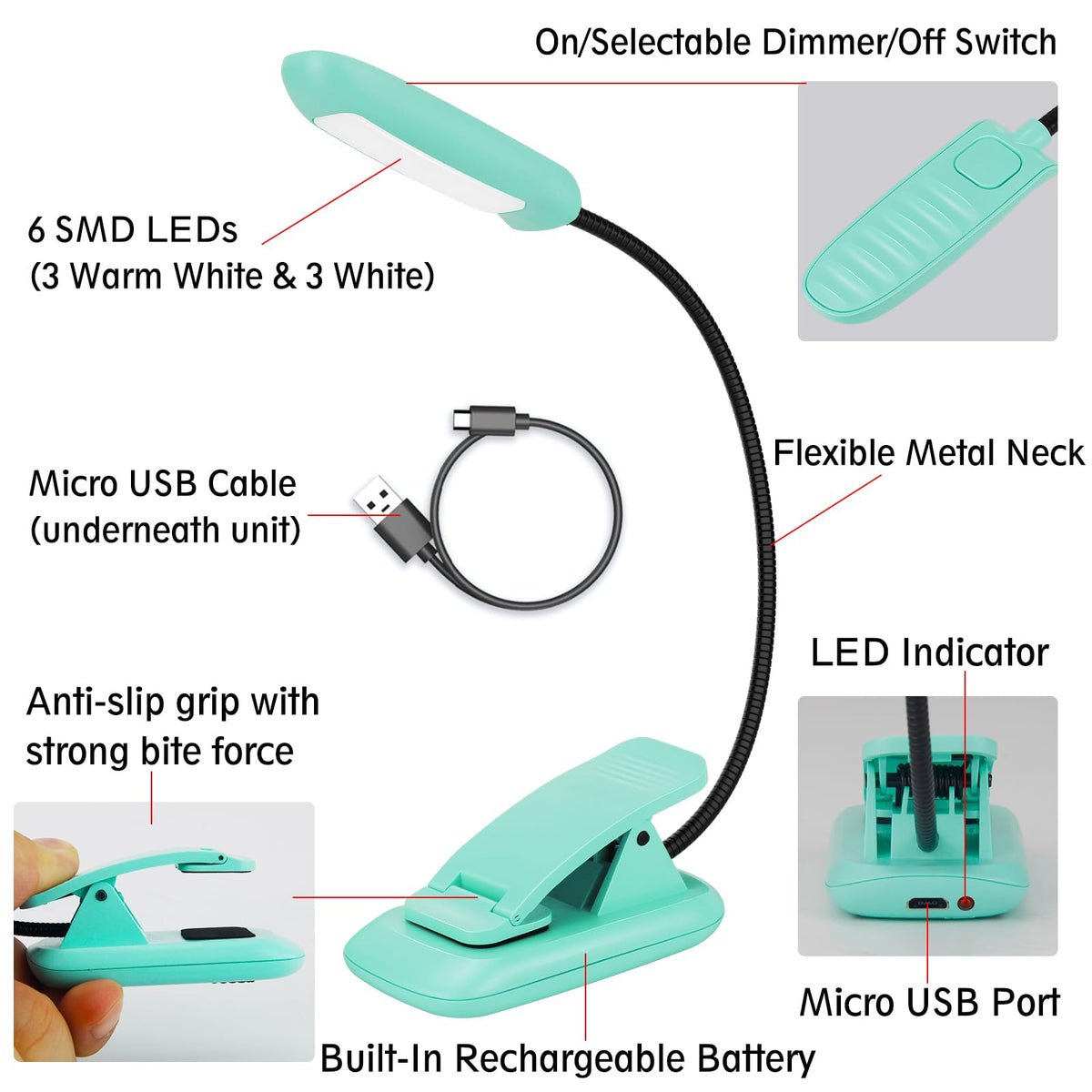 This book light features a flexible gooseneck design, allowing for easy adjustment to achieve your preferred lighting angle. Constructed from durable plastic, it is lightweight and easy to carry, making it a perfect addition to your reading toolkit. The built-in 900mAh rechargeable battery ensures you can enjoy long reading sessions without the hassle of changing batteries. With a micro USB charging port, convenience is at your fingertips.