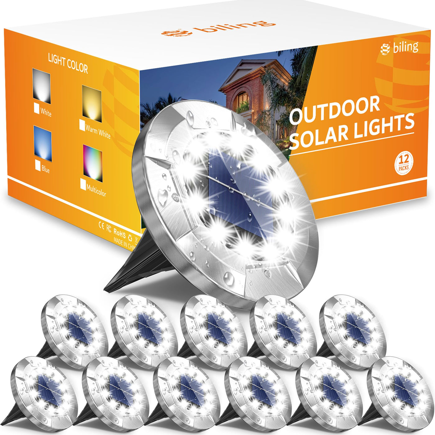 Biling Solar Lights For Outside Solar Lights Oudoor Waterproof Can Be Widely Used For Yard Walkway Driveway Gardenpatio Lawn Poolside.You Can Use Them As Solar Garden Lights Or Solar Pathway Lights, They Will Give Out Bright And Soft Lights.The Solar Solar Powered Outdoor Lights Are Easy To Assemble And Use, Only Take One Minute To Install, No Tools, No Wiring, And Can Work Automatically.Specification: Commodity Size: F4.5*5.1 Inch Solar Panel Volume: 2.5V/120Ma Led Quantity: 12 Battery: 600Mah Package Weight: 3.11 Lbs Package Dimension: 7.1*9.8*4.9 Inch Note: 1.Please Make Sure To Turn On The Switch Before Use. 2.Please Install In A Place That Can Receive Direct Sunlight. 3.On Rainy Or Cloudy Days, All The Solar Lights Will Work For Less Time.