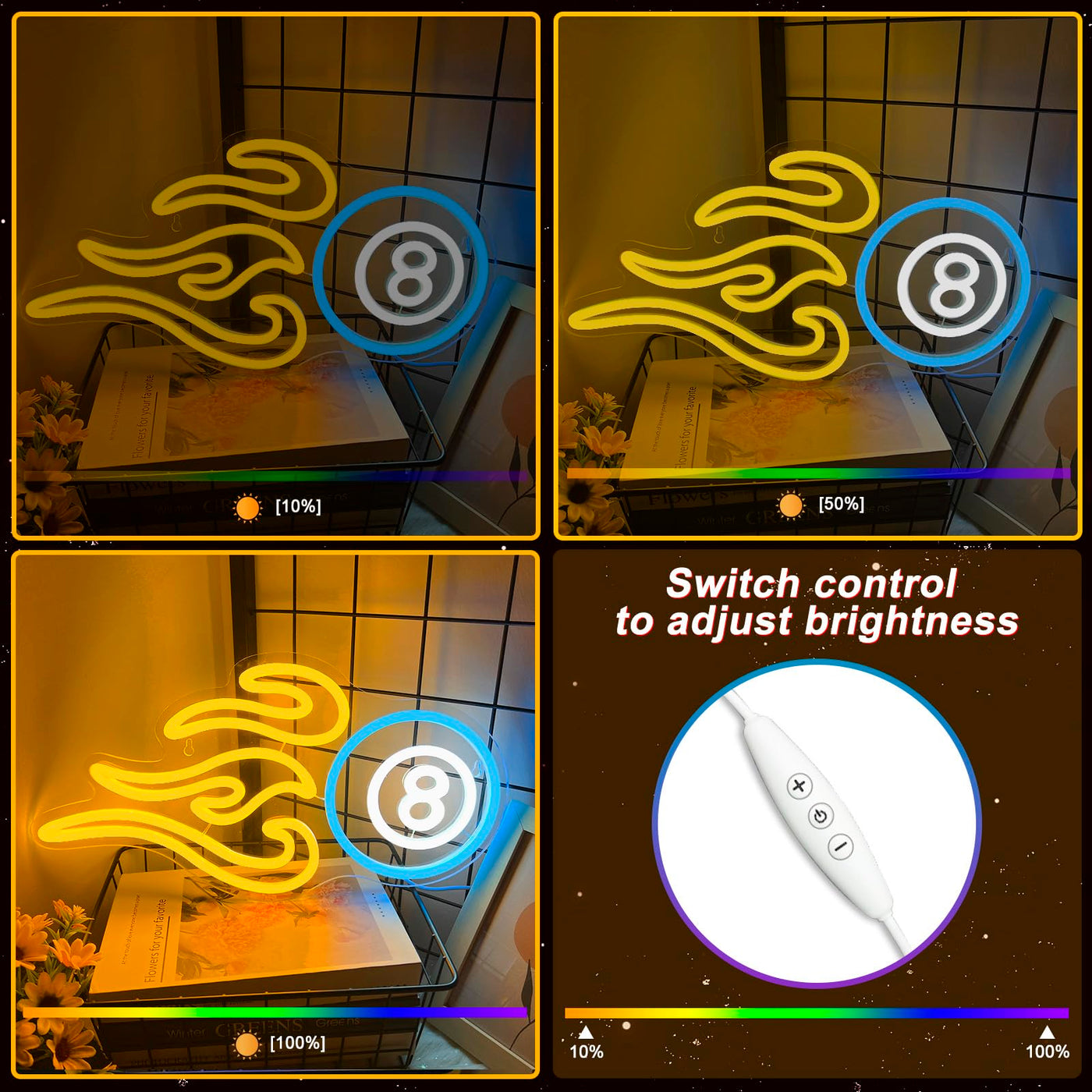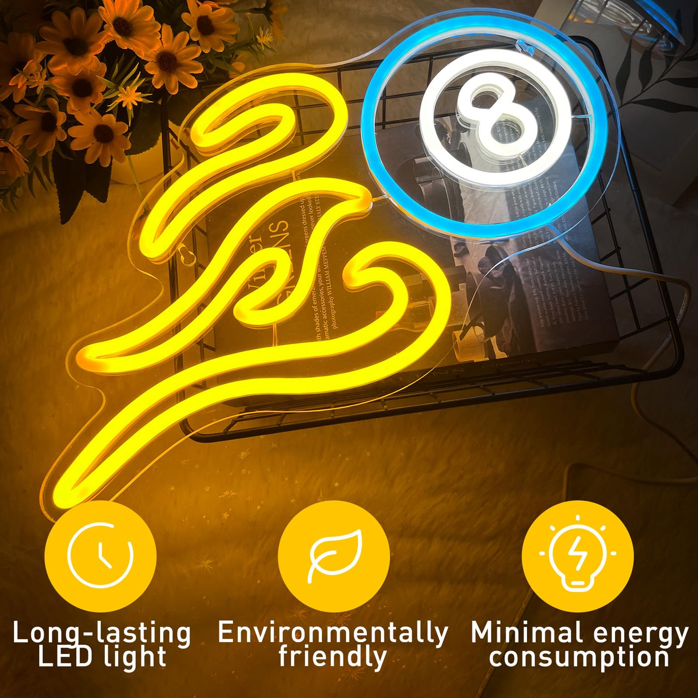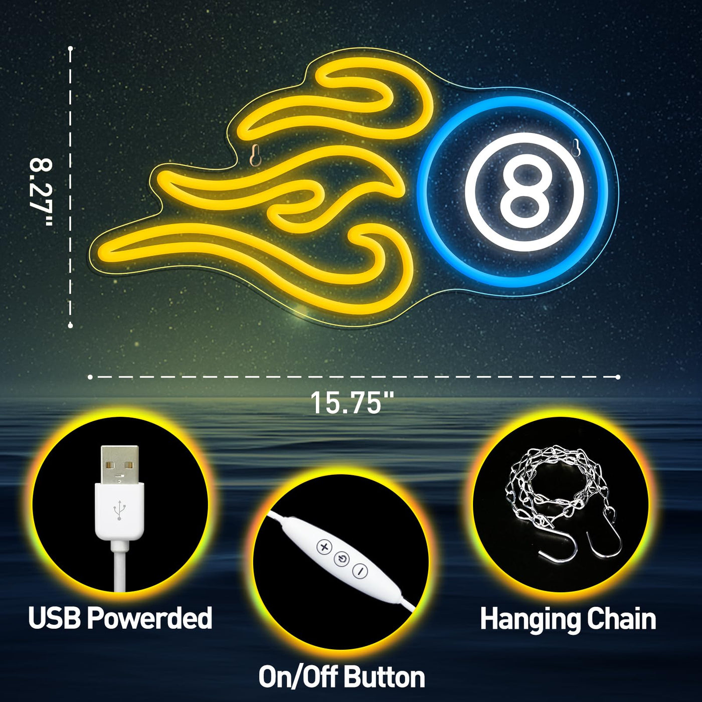 Billiards Neon Sign For Wall Decor, Dimmable Black 8 Led Light Sign, Usb Powered Sign For Gameroom Party Man Cave Beer Bar, Gift Decoration 15.75”×8.27”